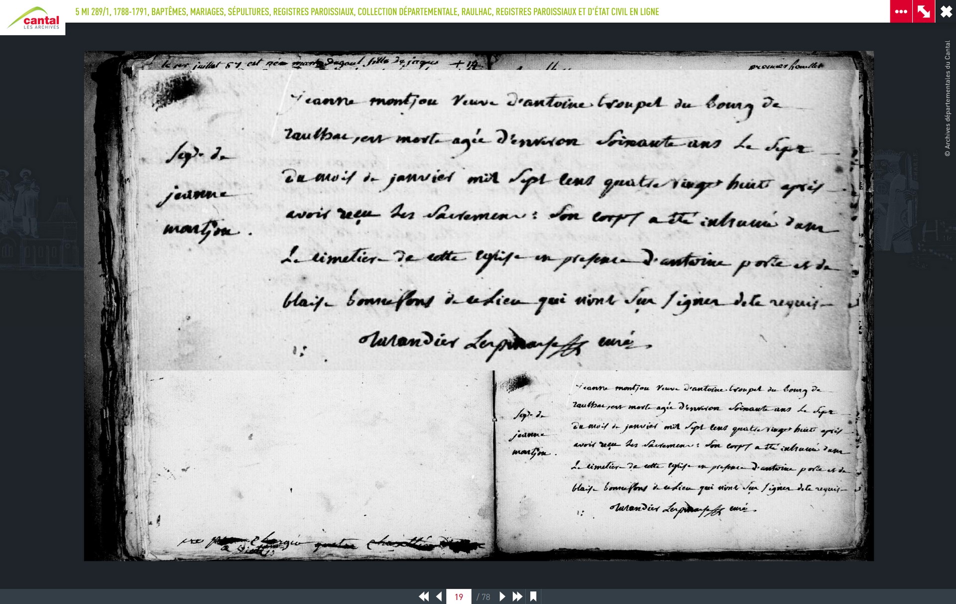de Raulhac et Jeanne Monjou âgée d'environ 25 ans fille