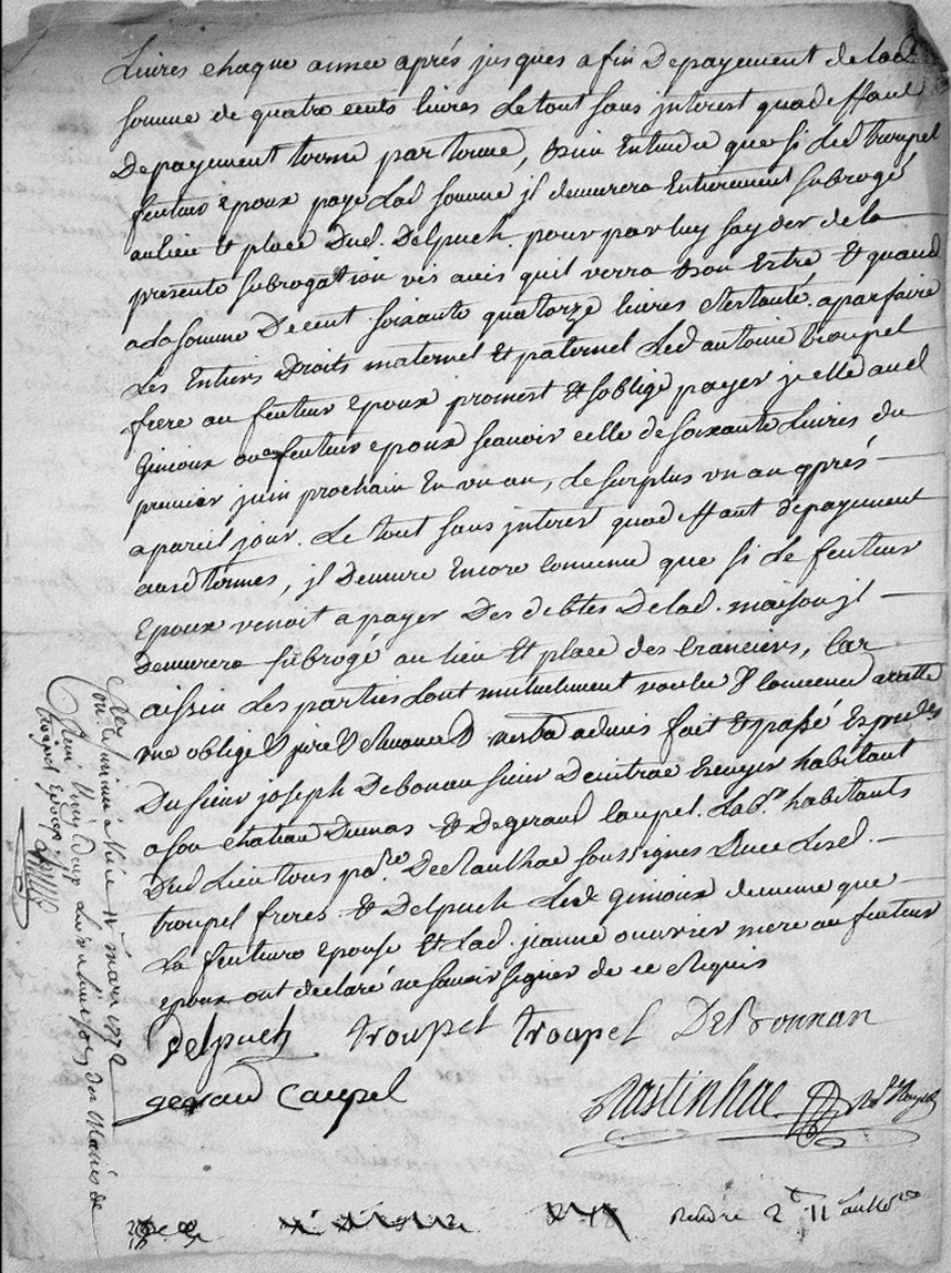 Delpuech de la dite somme de deux cents cinquante livres il