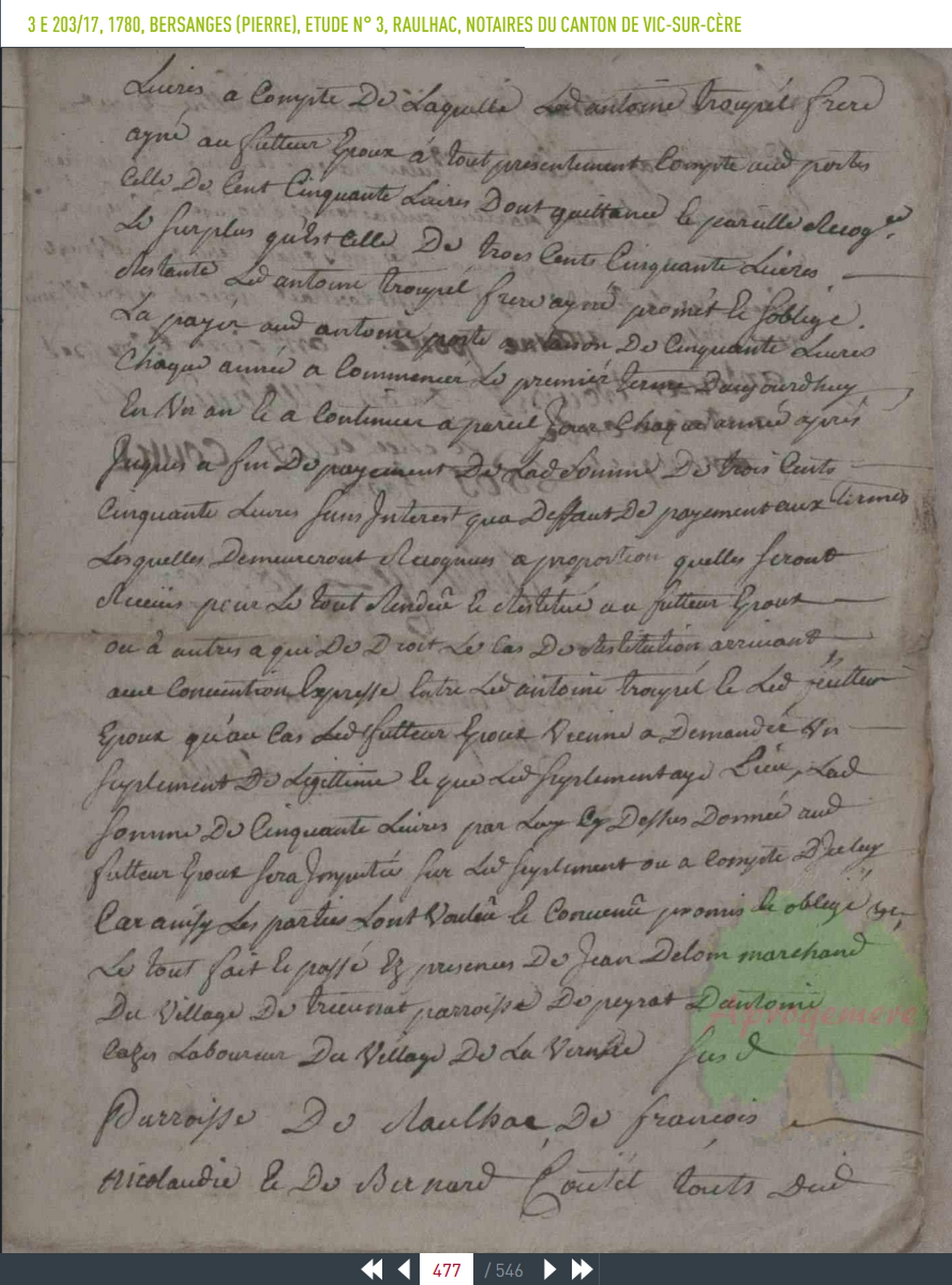 Antoine Bos garçon d'Albospeyre paroisse dudit Raulhac