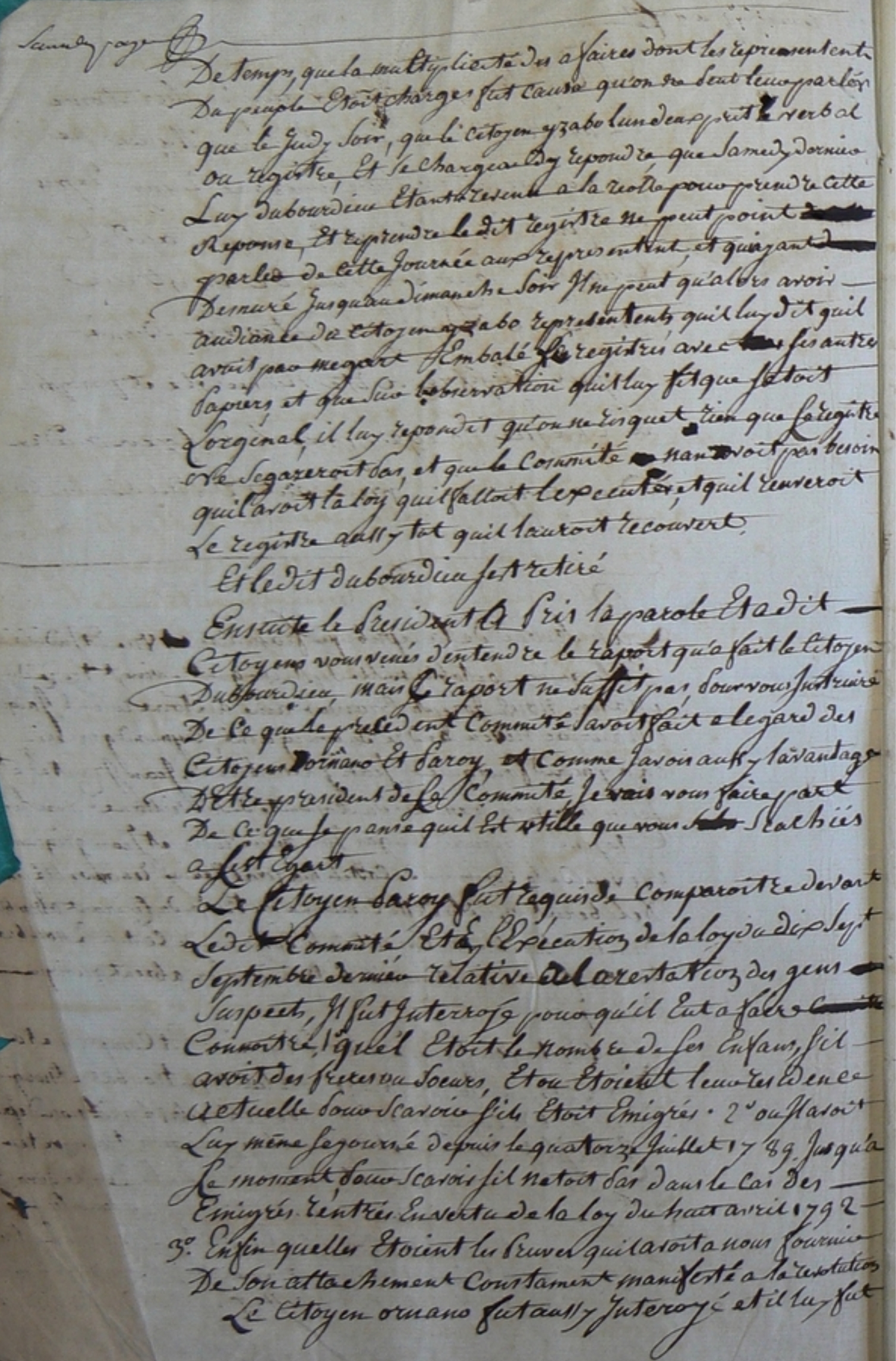 et sur le rapport que je leur fis qu'il y avait la femme du citoyen
