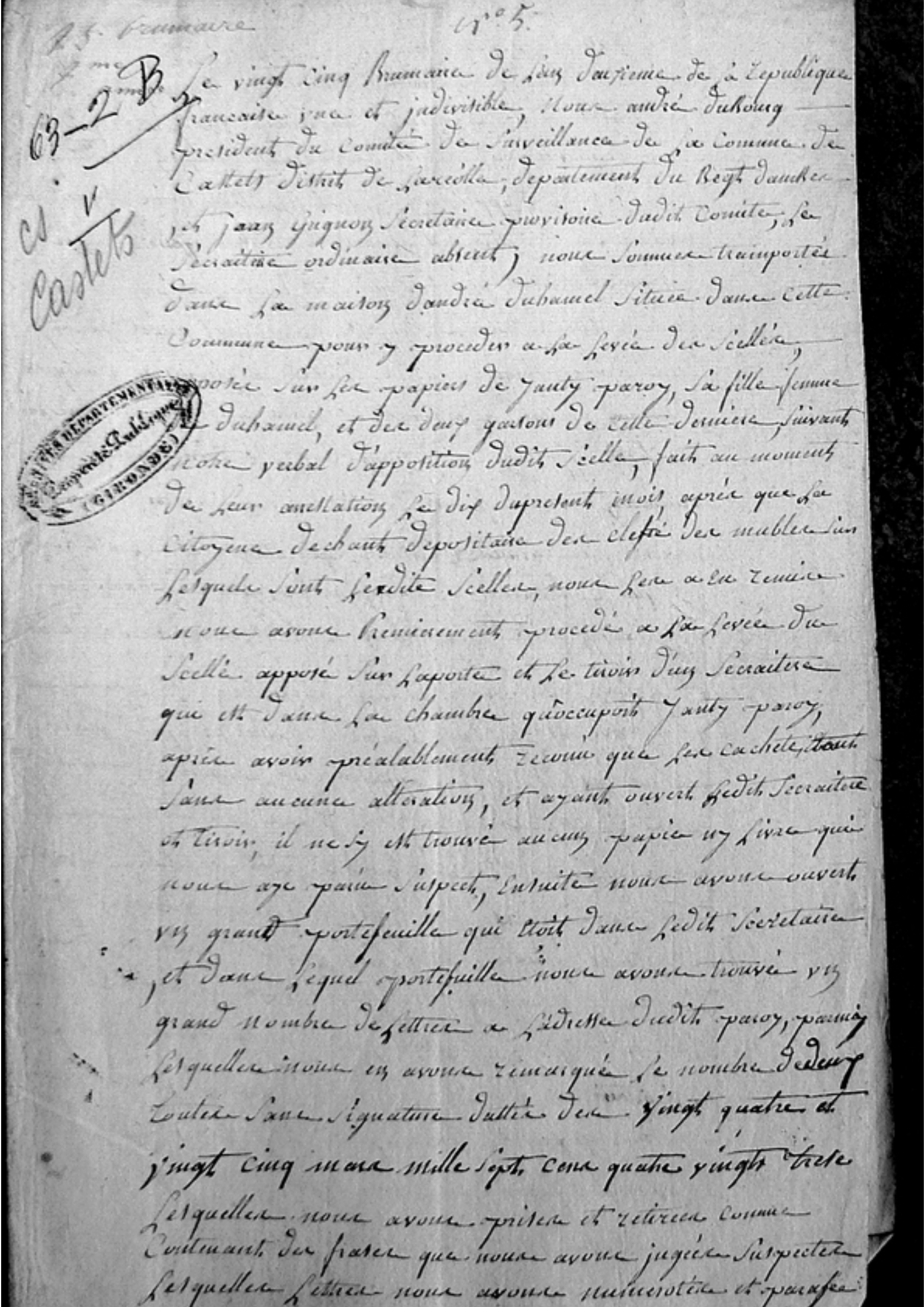 de poser les scellés sur les papiers du citoyen Paroy