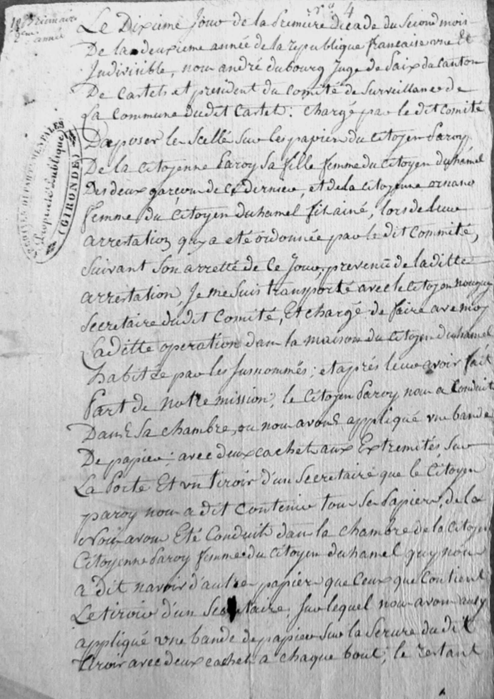 de la citoyenne Paroy sa fille, femme du citoyen Duhamel,