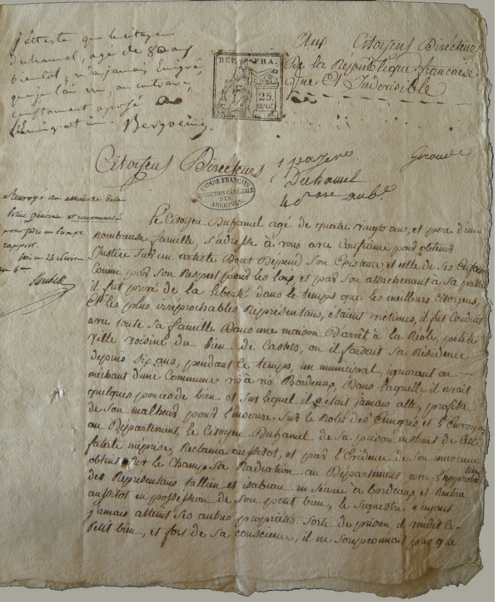 au département, le citoyen Duhamel de sa prison instruit de cette