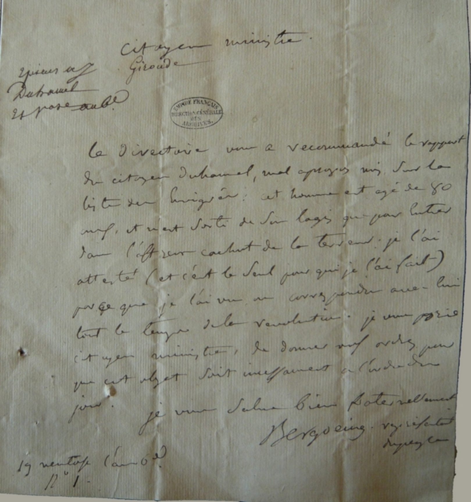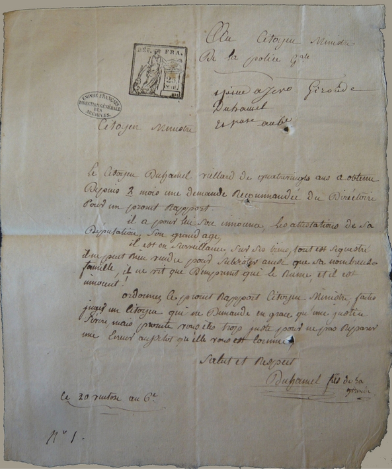 Au Ministre de la Police Générale