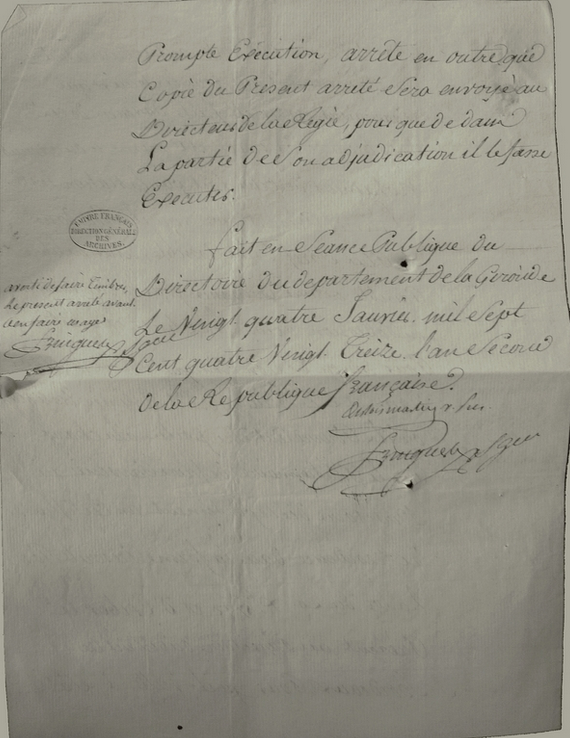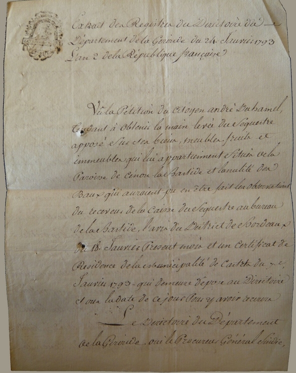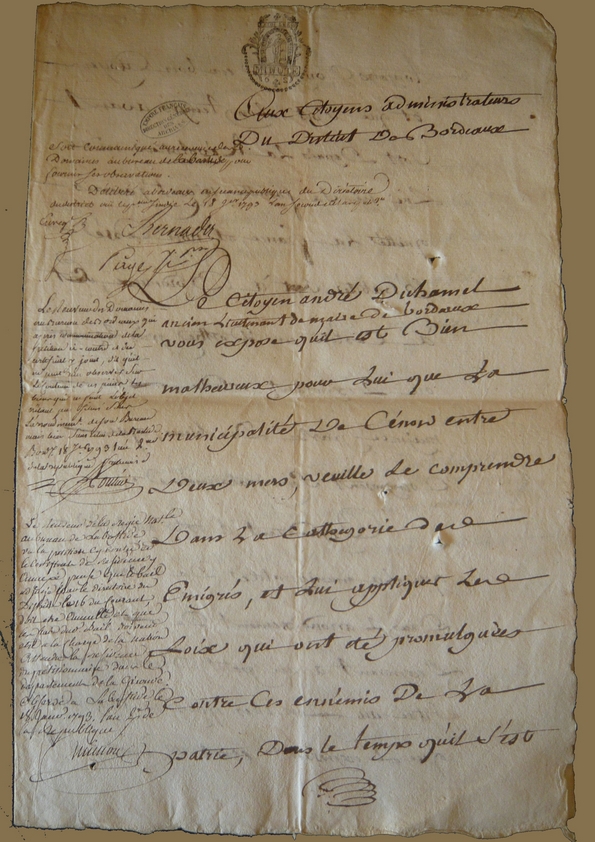 La pétition d'origine, peut être datée de fin décembre1792, début janvier 1793, n'est pas dans le dossier, mais est bien résumée par le receveur des domaines de Bordeaux.