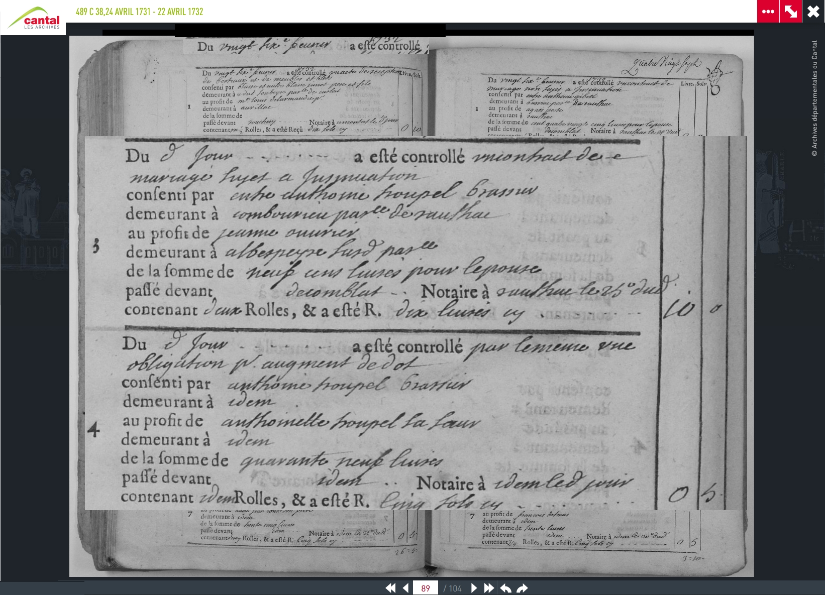 - un prêt pour l'augmentation de la dote d'Anthoinette, sœur d'Anthoine.
