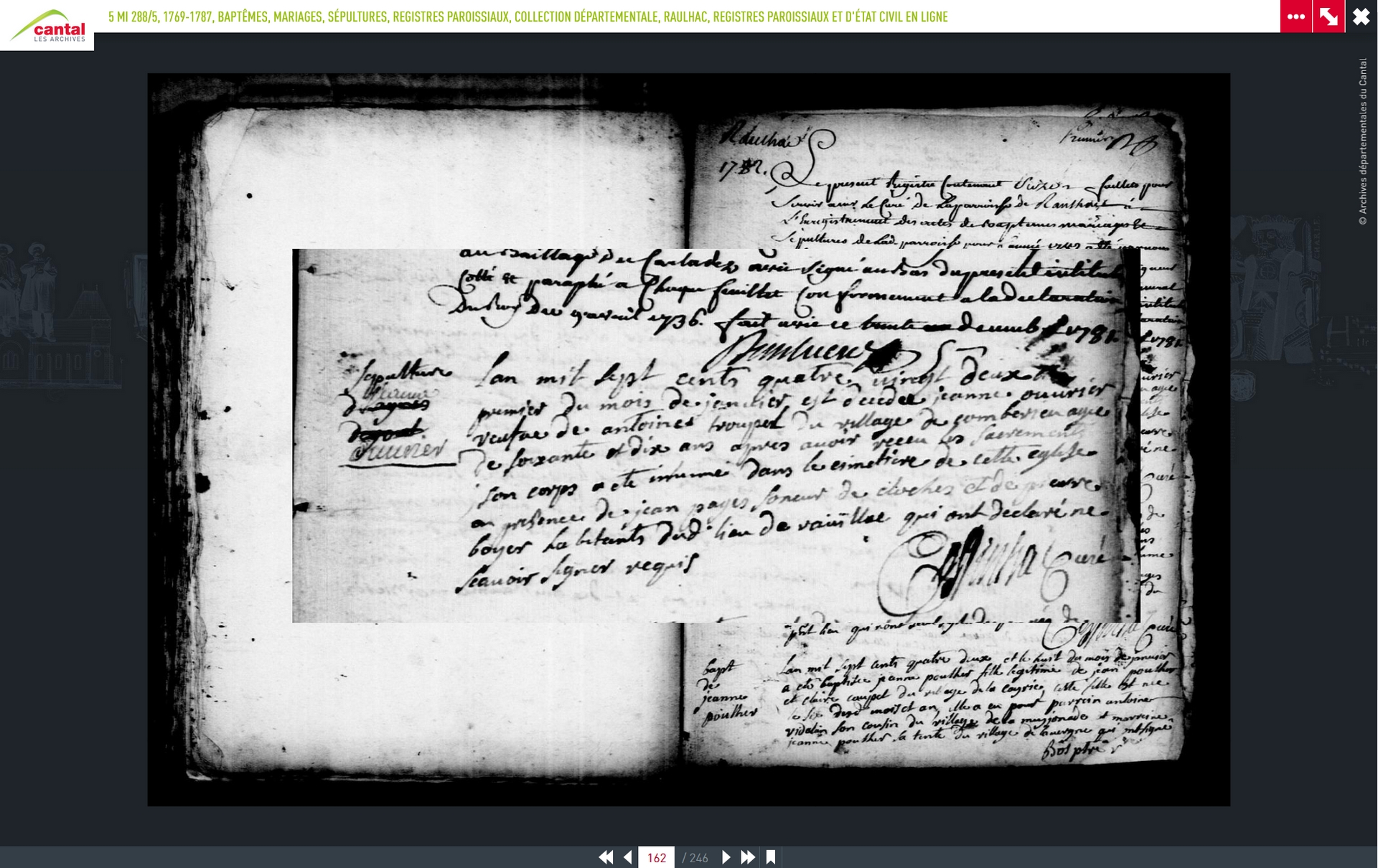 Le contrat de mariage à été signé le 25 février 1732 devant maître Decomblat, notaire à Raulhac. Malheureusement il ne se trouve pas aux AD15.