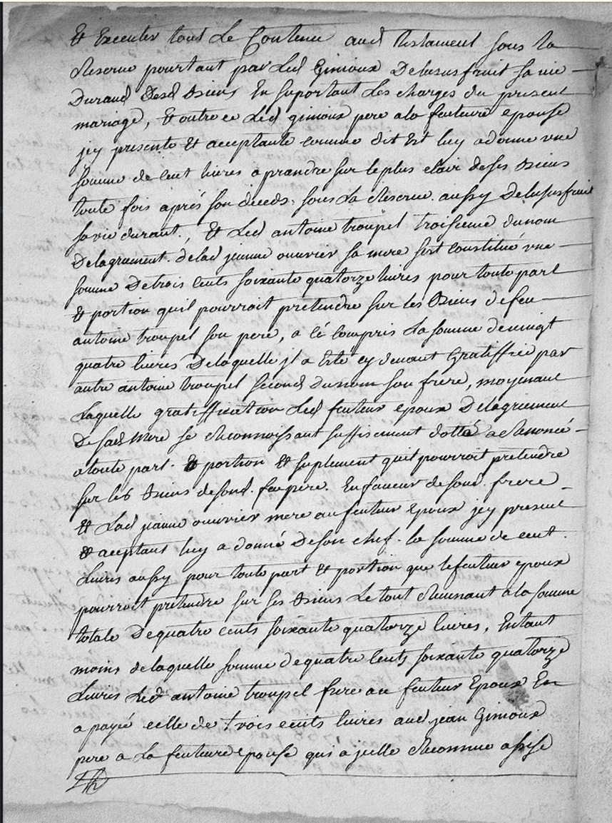 mariage, et outre ledit Ginioux père à la future épouse