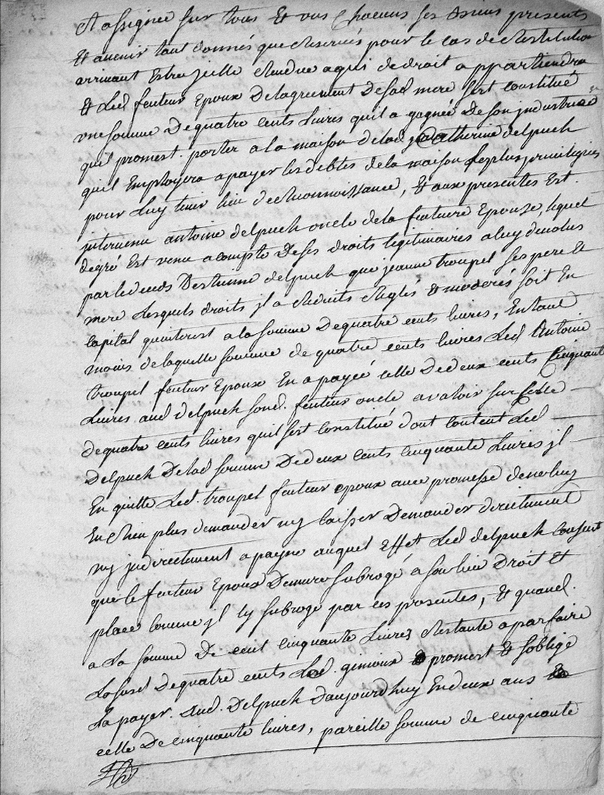 Delpuech de la dite somme de deux cents cinquante livres il