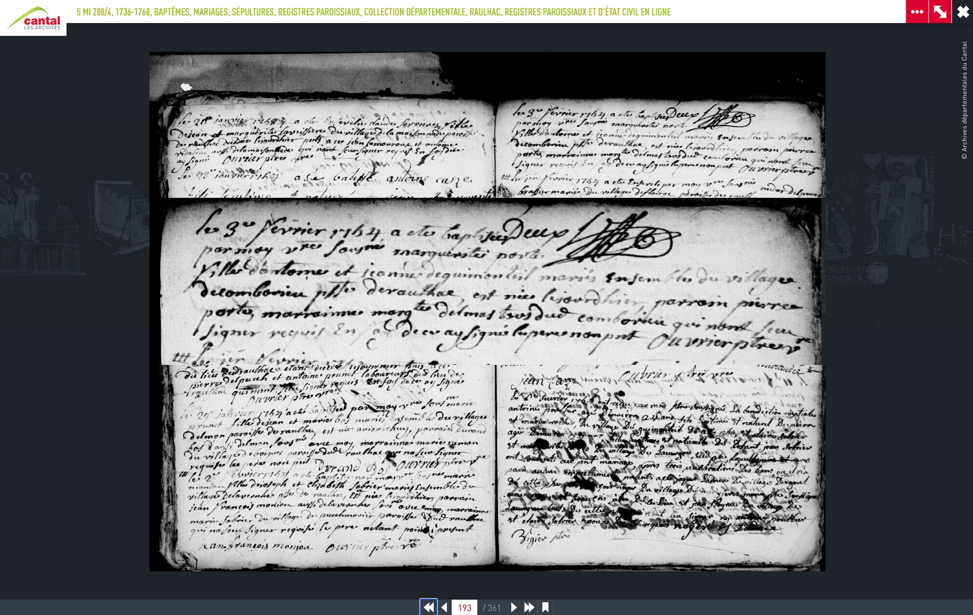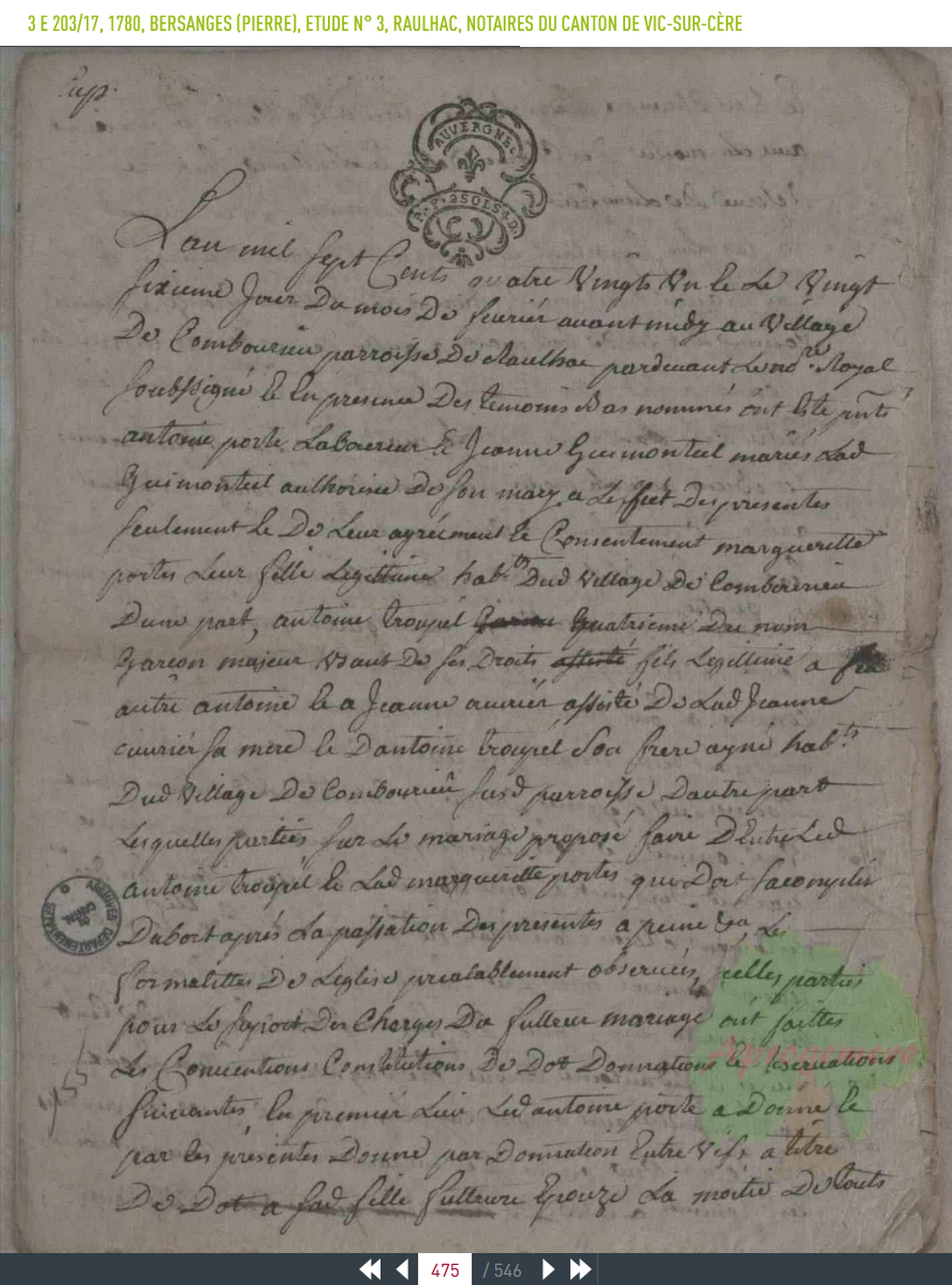 de Combourieu paroisse de Raulhac, est née le jour d'hier, parrain Pierre