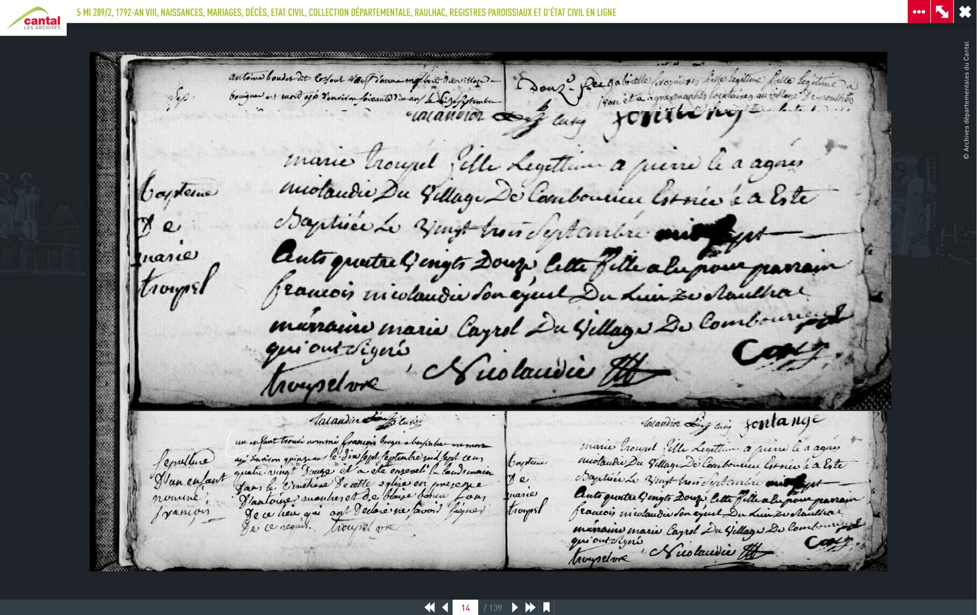 paroisse dudit Raulhac dont le parrain a signé la marraine