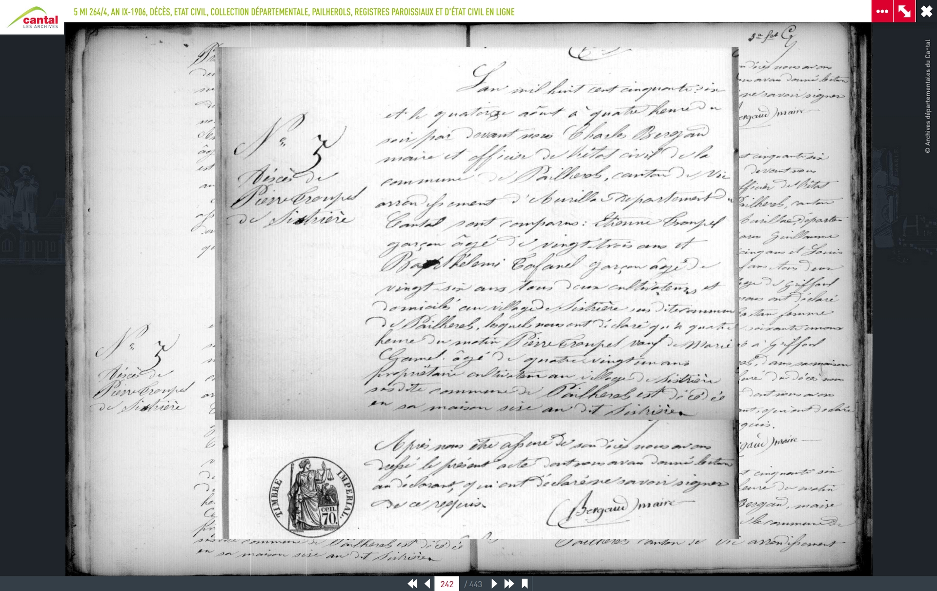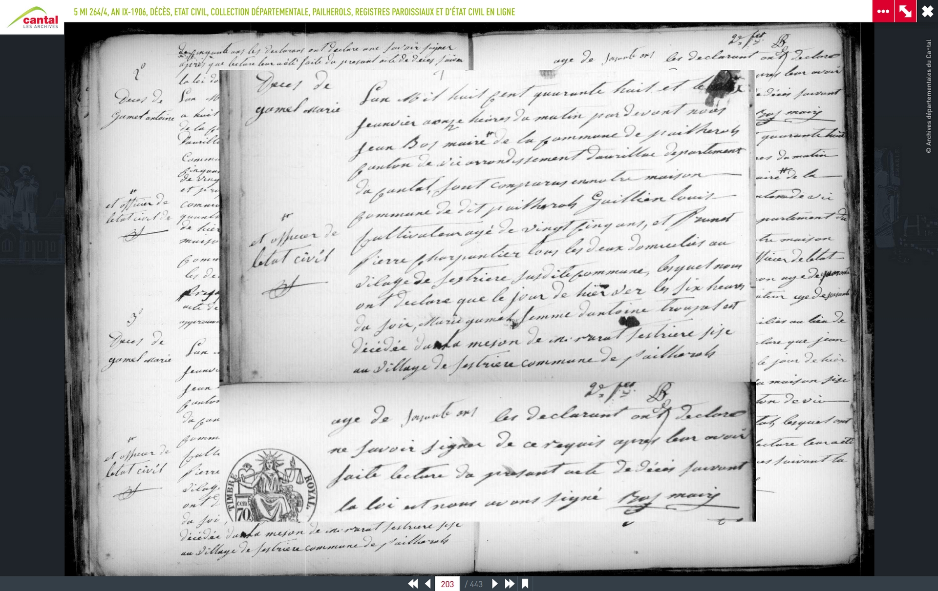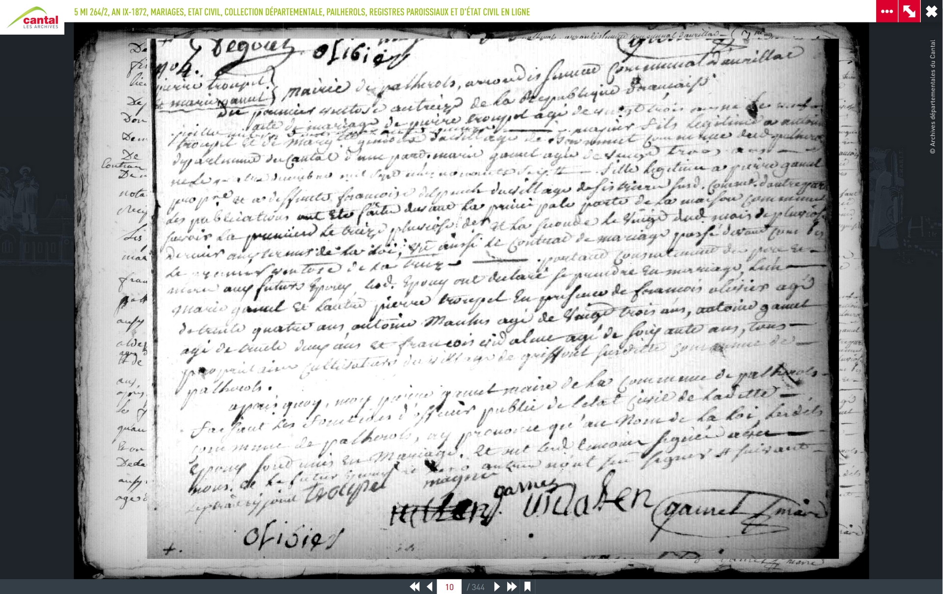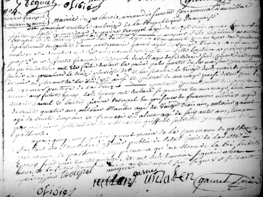 1- Marguerite, née le 29 décembre 1805 à Pailherols, et se marie le 21 février 1827 avec Jean POULHES. Elle décède le 11 mai 1875 à Brommet.