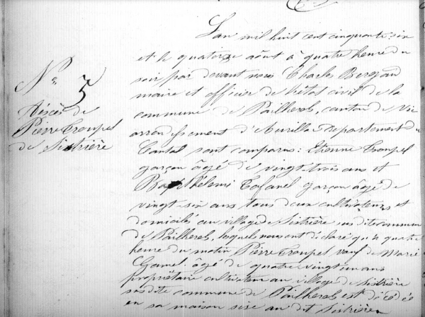 ➤ 2- Antoine, né le 26 septembre 1807 à Pailherols.