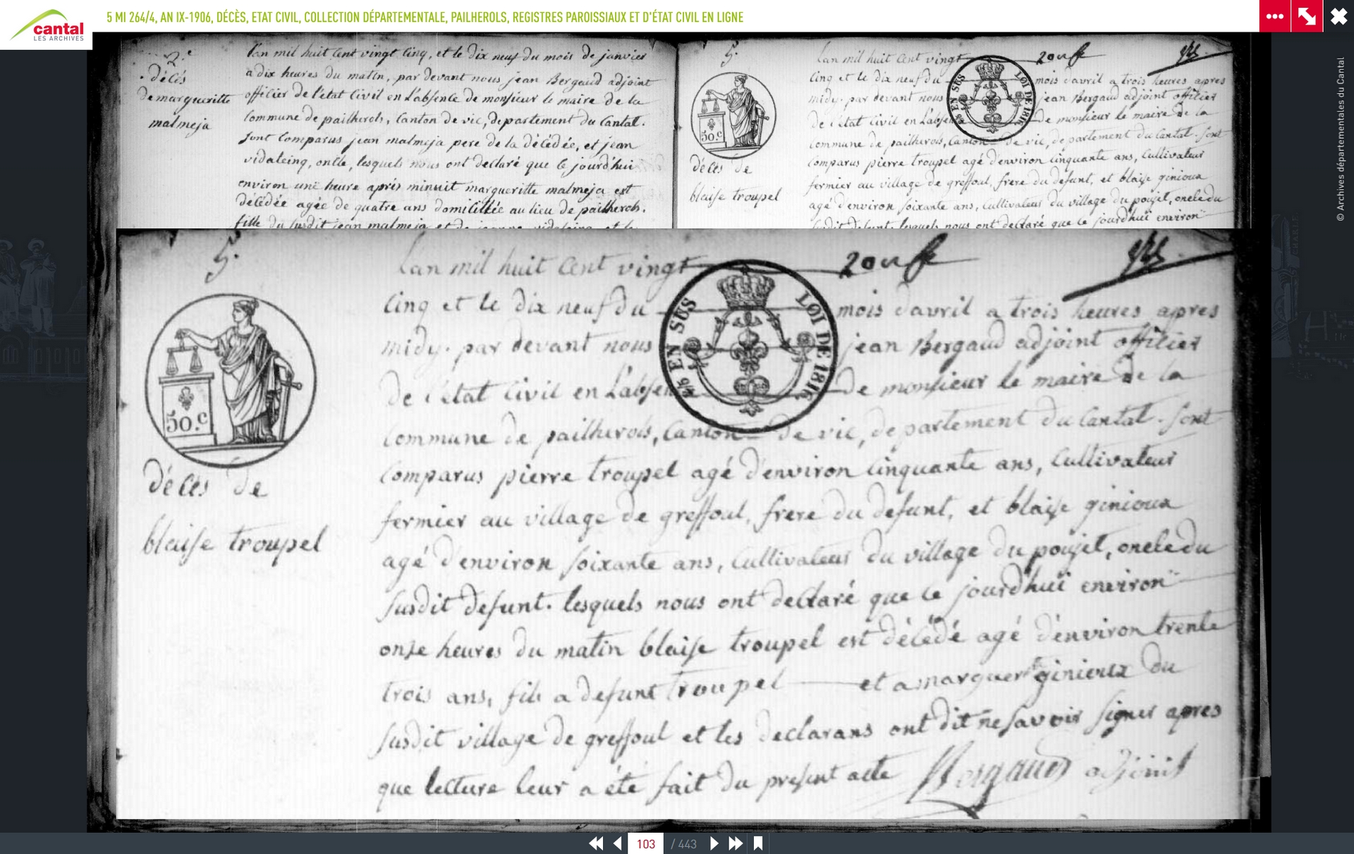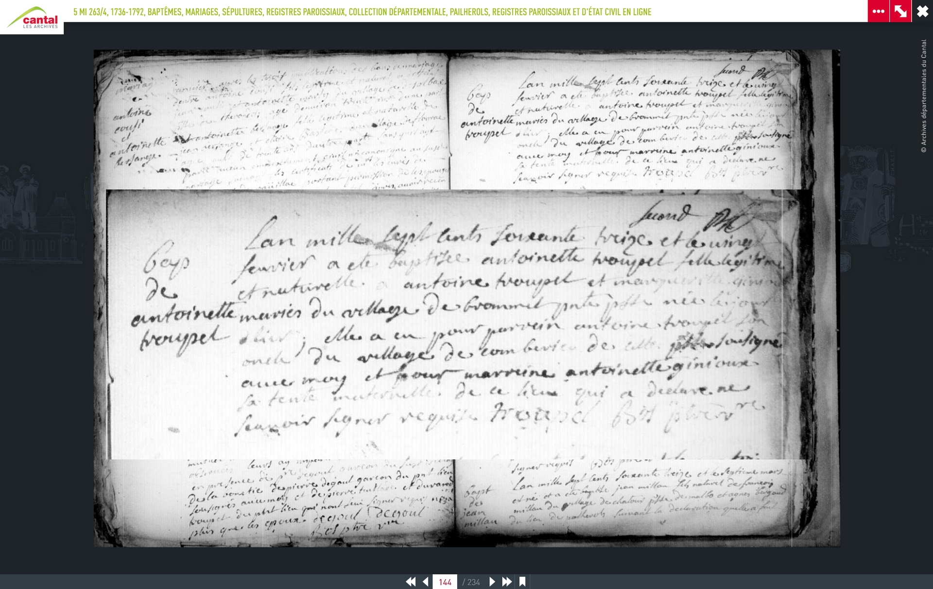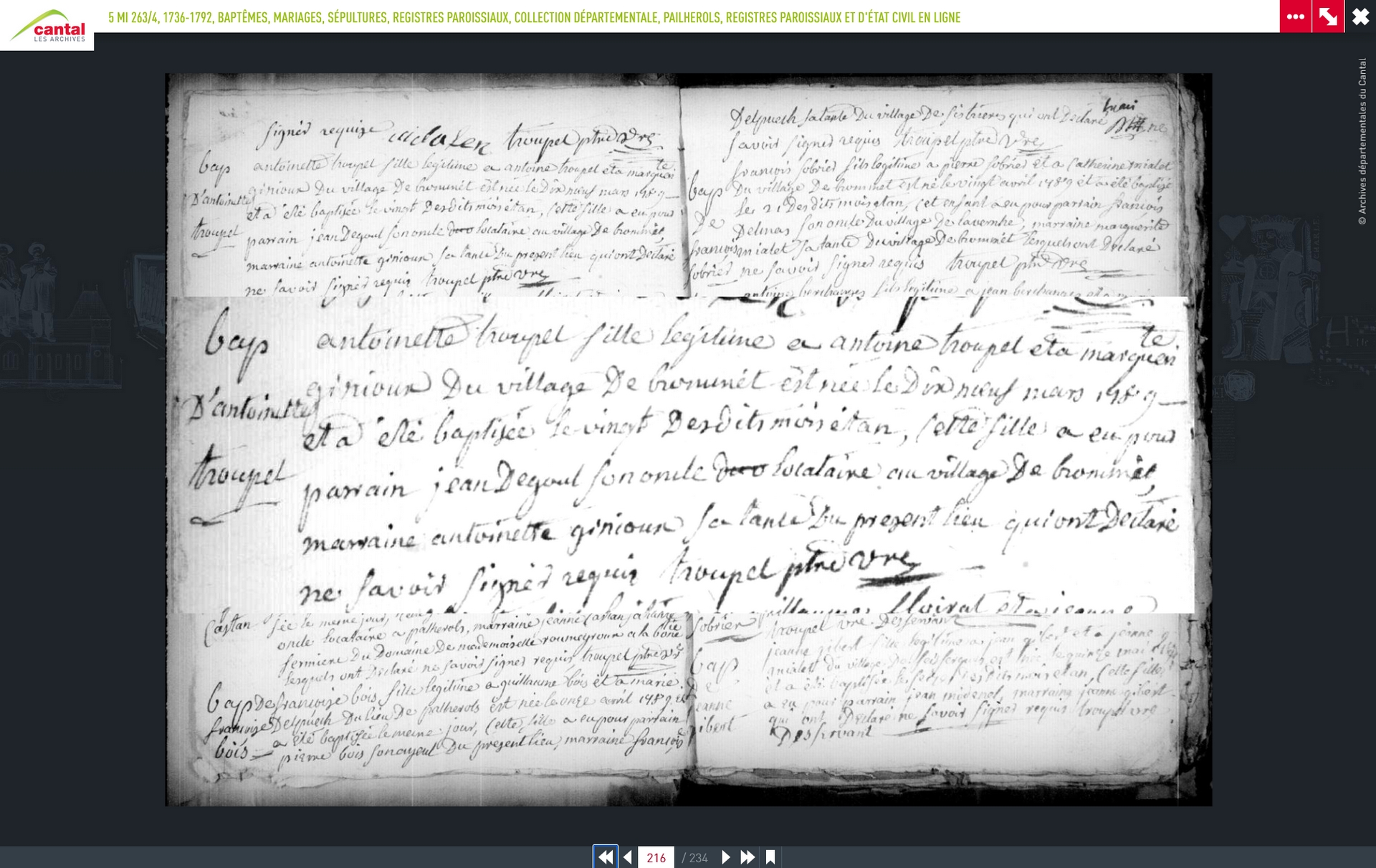 Les actes d'état civil de cette branche, Antoine TROUPEL 3ème du nom - Marguerite GINIOUX, nous donnent des informations, notamment les noms et prénoms, qui changent au cours de la vie des aîeuls.