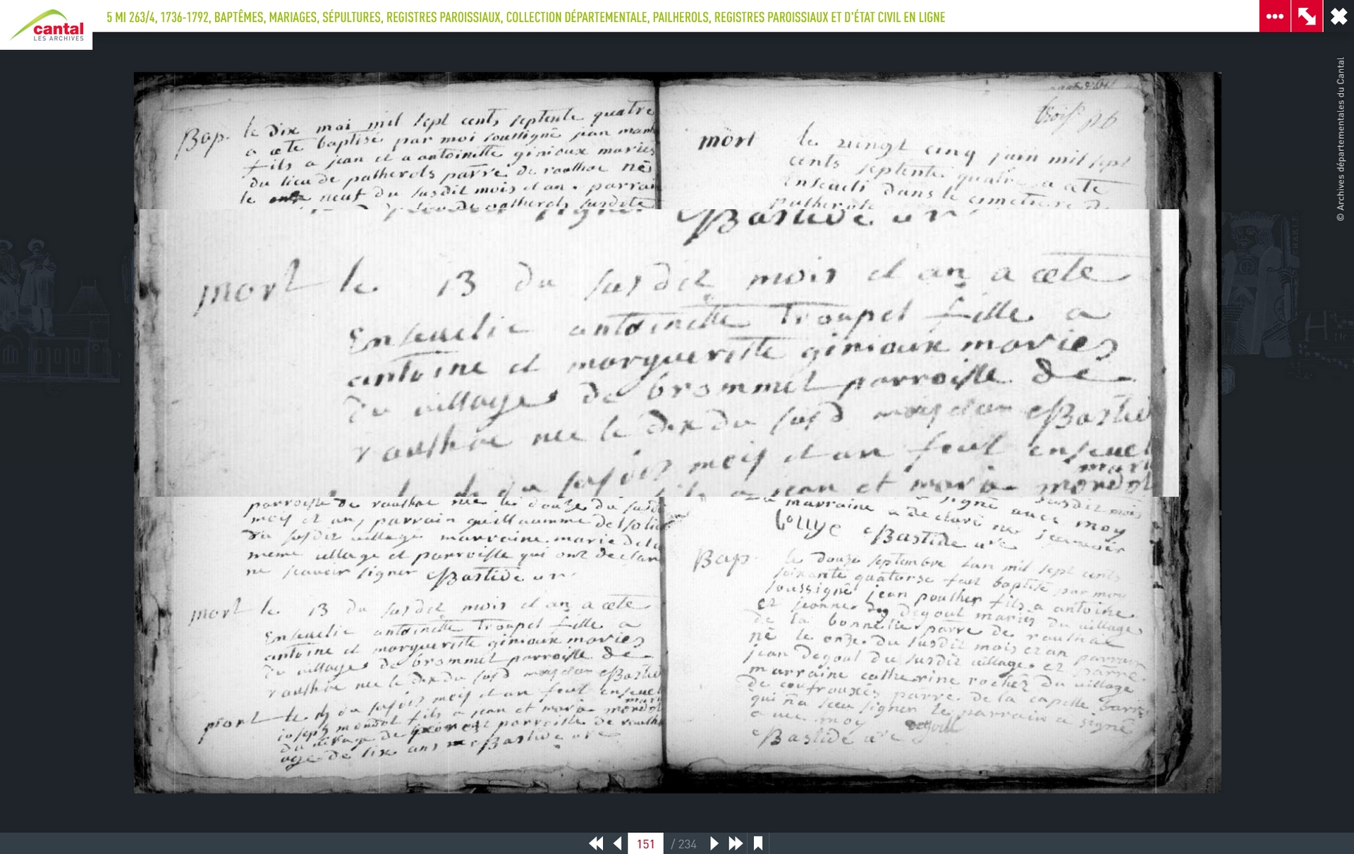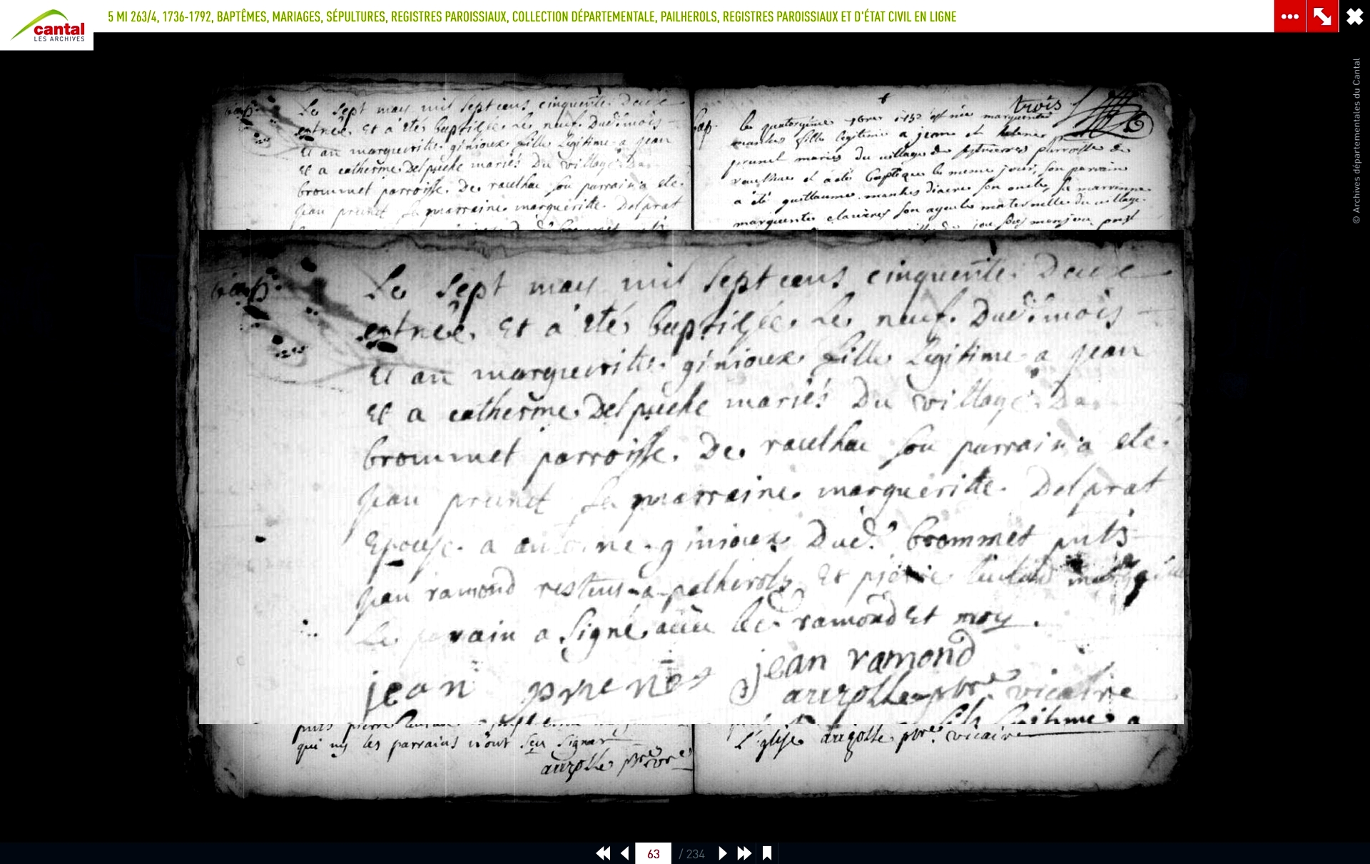 Marguerite GINIOUX, est née le 7 mars 1752 à Brommet commune de Pailherols.