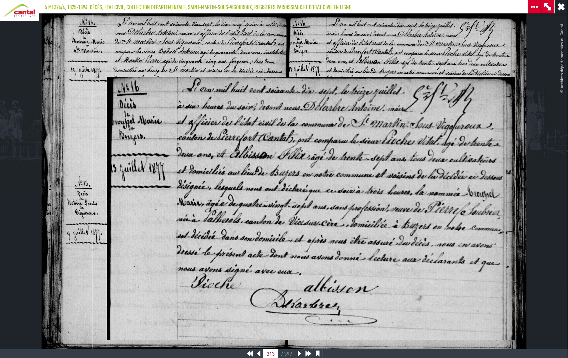 décédée le 13 juillet 1877 à Buzers commune de St Martin sous Vigouroux.