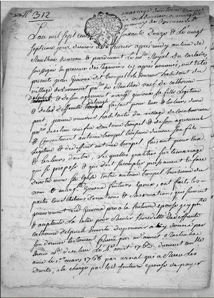 Dans le contrat de mariage d'Antoine TROUPEL 3ème du nom et Marguerite GINIOUX, le père de la future se nomme Jean Ginioux, dit Troupel.