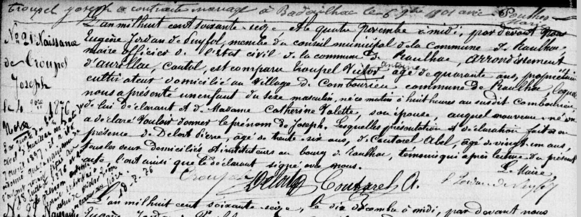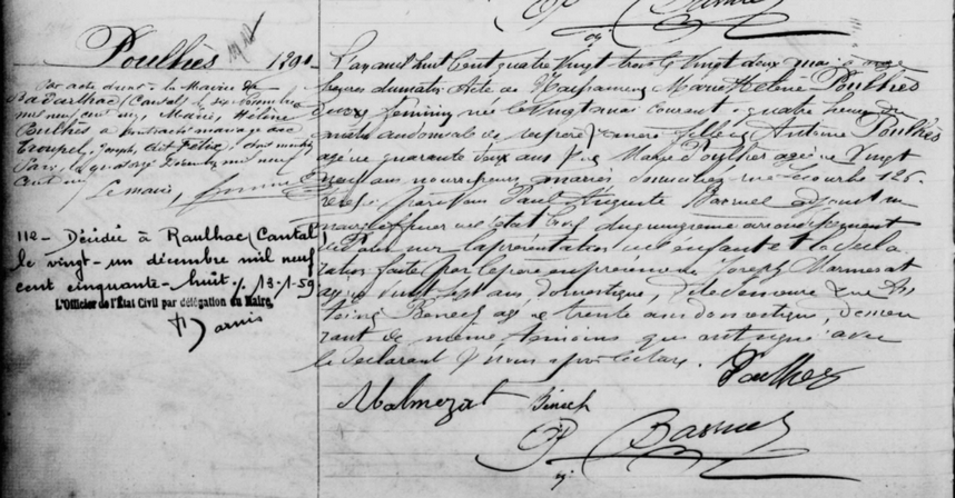 1- Maria Victorine, née le 20 septembre 1902 au bourg de Raulhac, décède le 12 octobre 1902, à Raulhac.