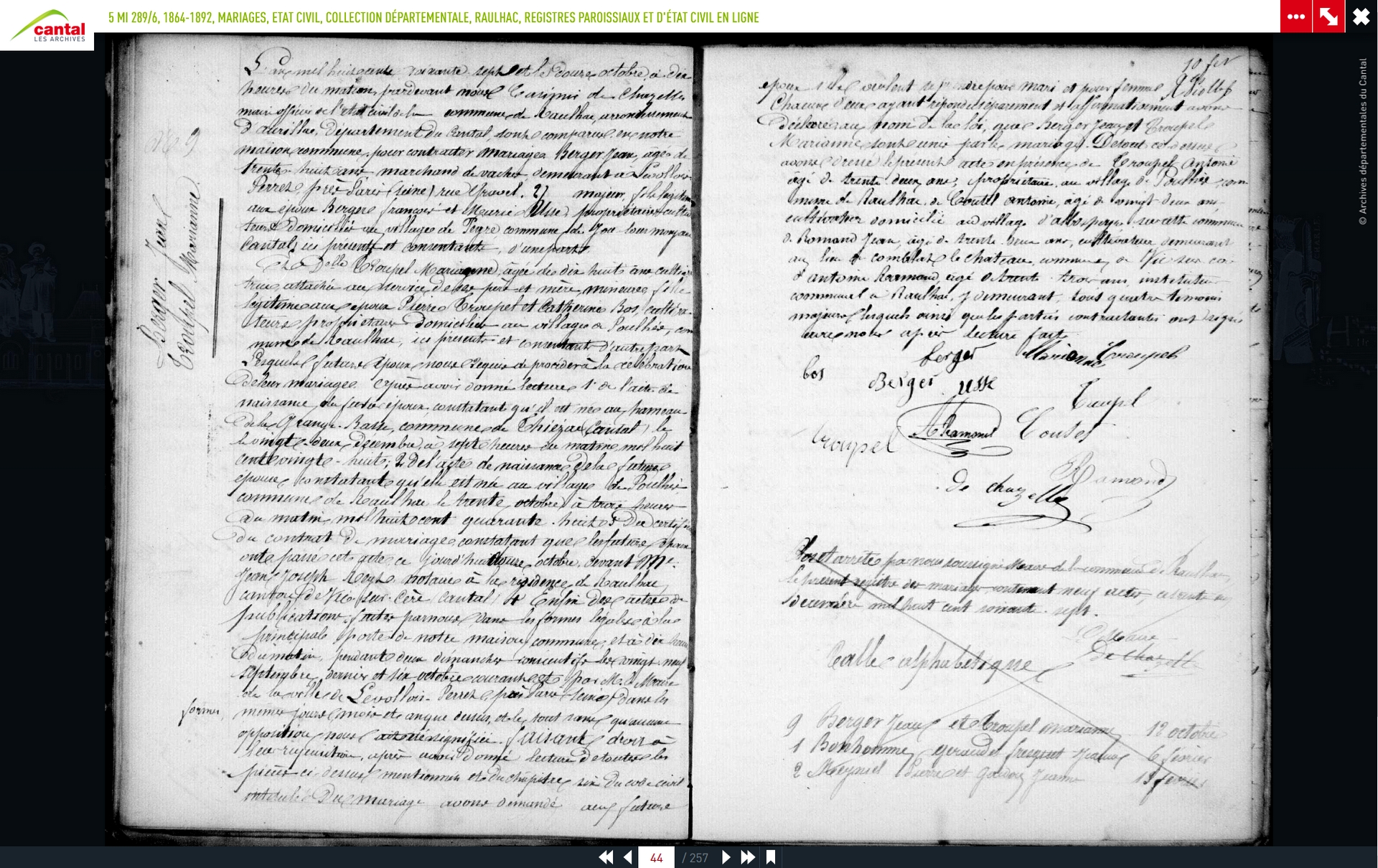 ➤ 1- Antoine né le 15 mai 1844 à Poulhès, commune de Raulhac. Il se marie le 31 janvier 1866 à Carlat avec Marie VERDIER.