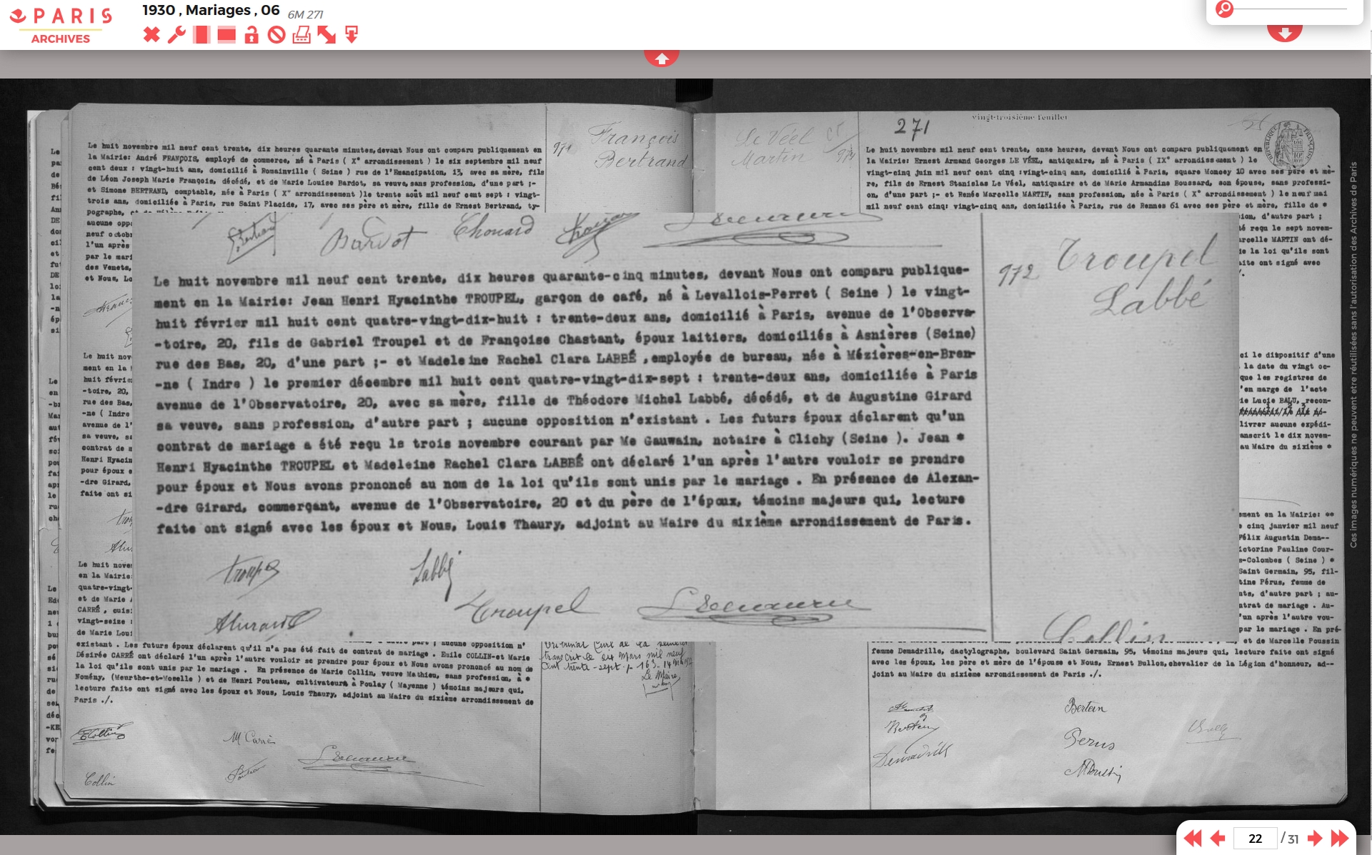 Jean Henry Hyacinthe TROUPEL - Madeleine Rachel Clara LABBE