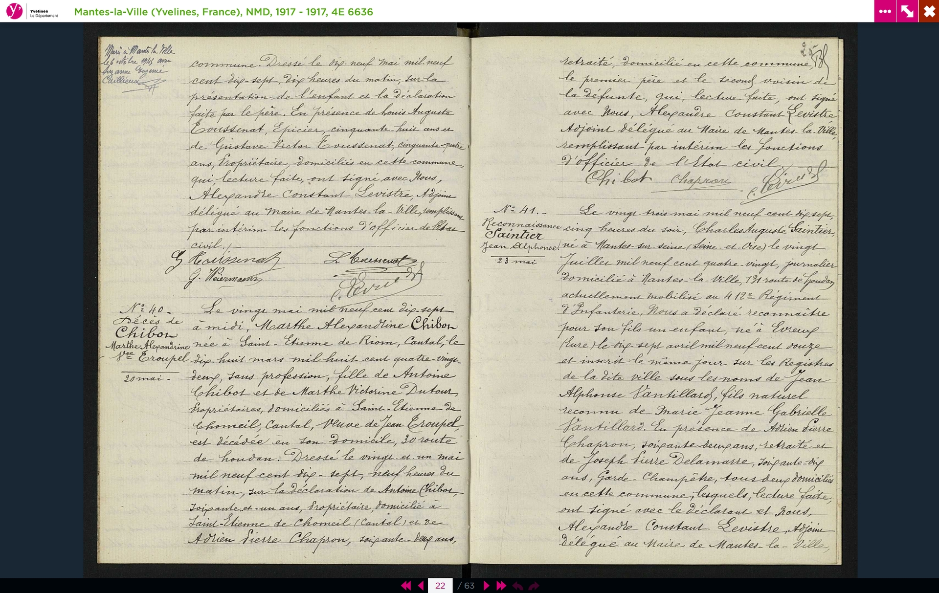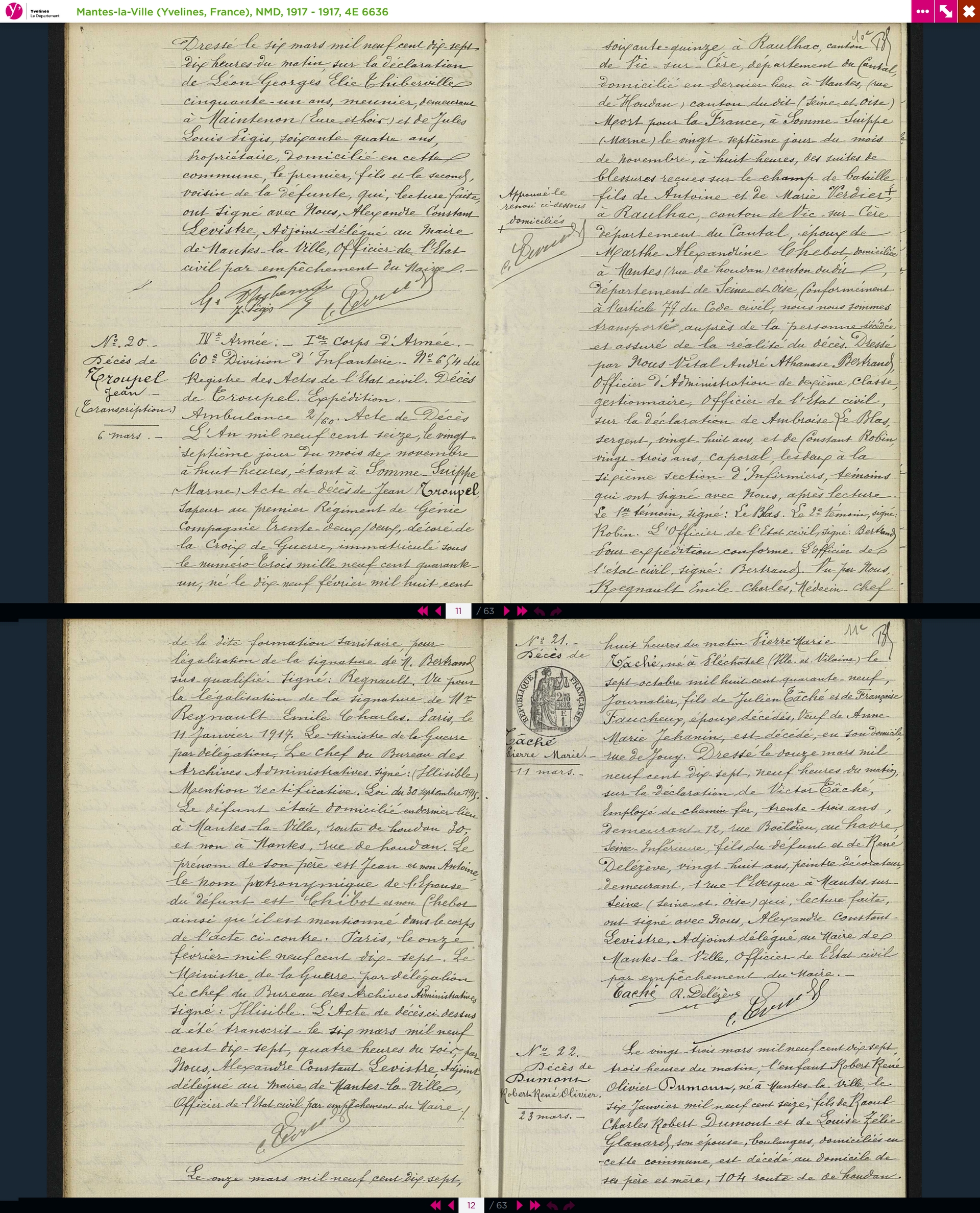 Marthe Alexandrine décéde le 20 mai 1917 à Mantes la Ville.