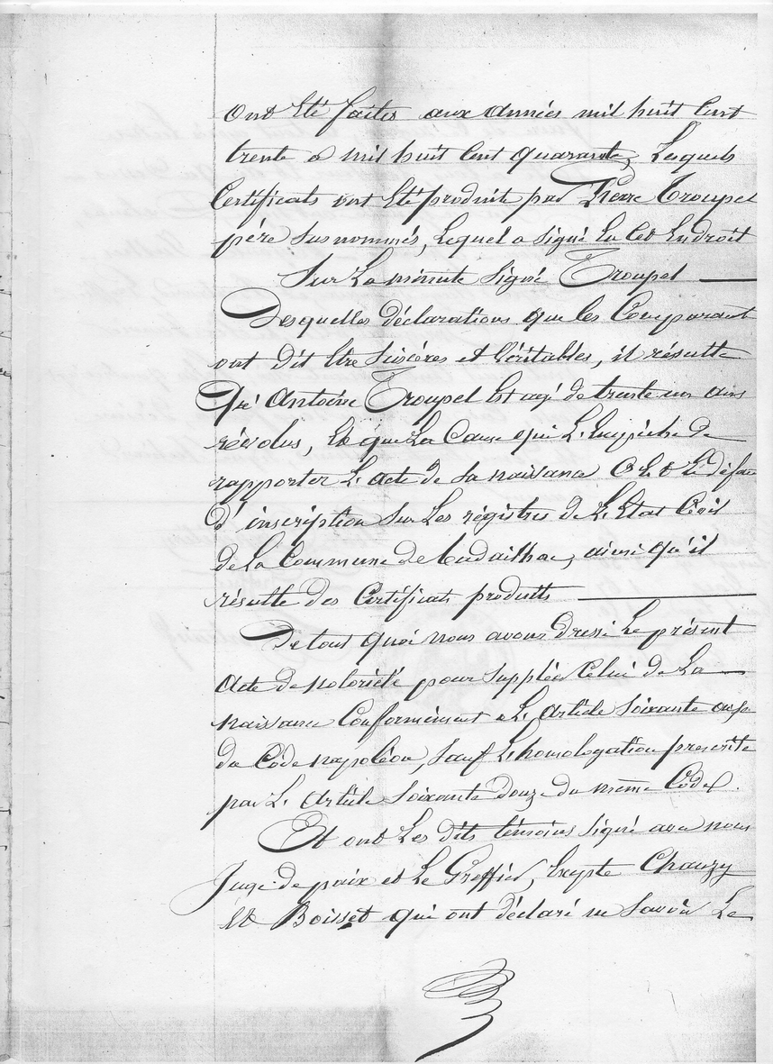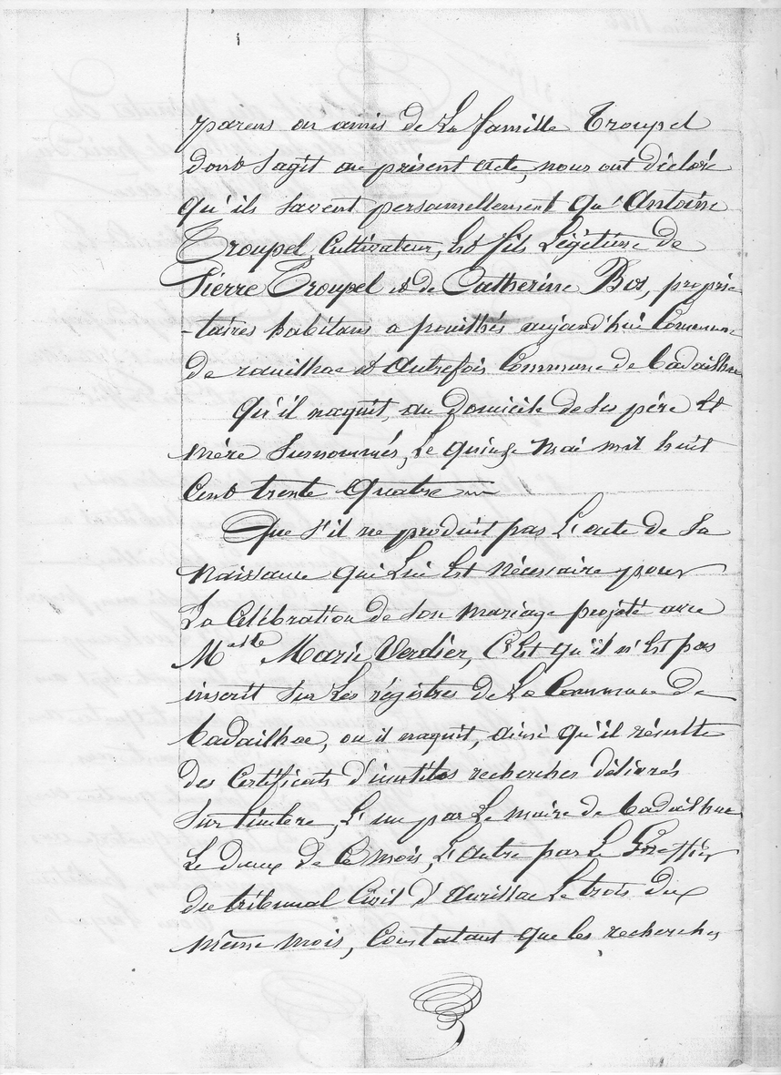➤ 5- Jean le 19 février 1875 à Poulhès, commune Raulhac. Il se marie avec Marthe, Alexandrine CHIBOT
