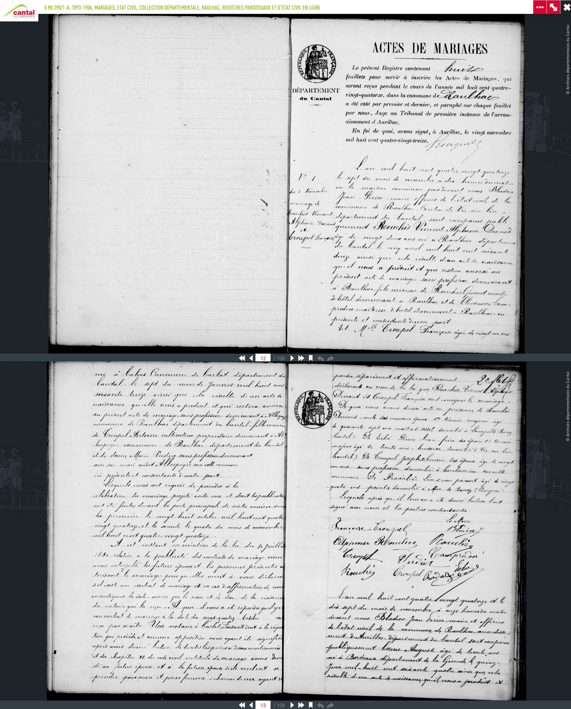➤ 9- François le 13 juin 1884 à Albospeyre, commune de Raulhac. Il se marie avec Mélanie, Louise MALMEZAT