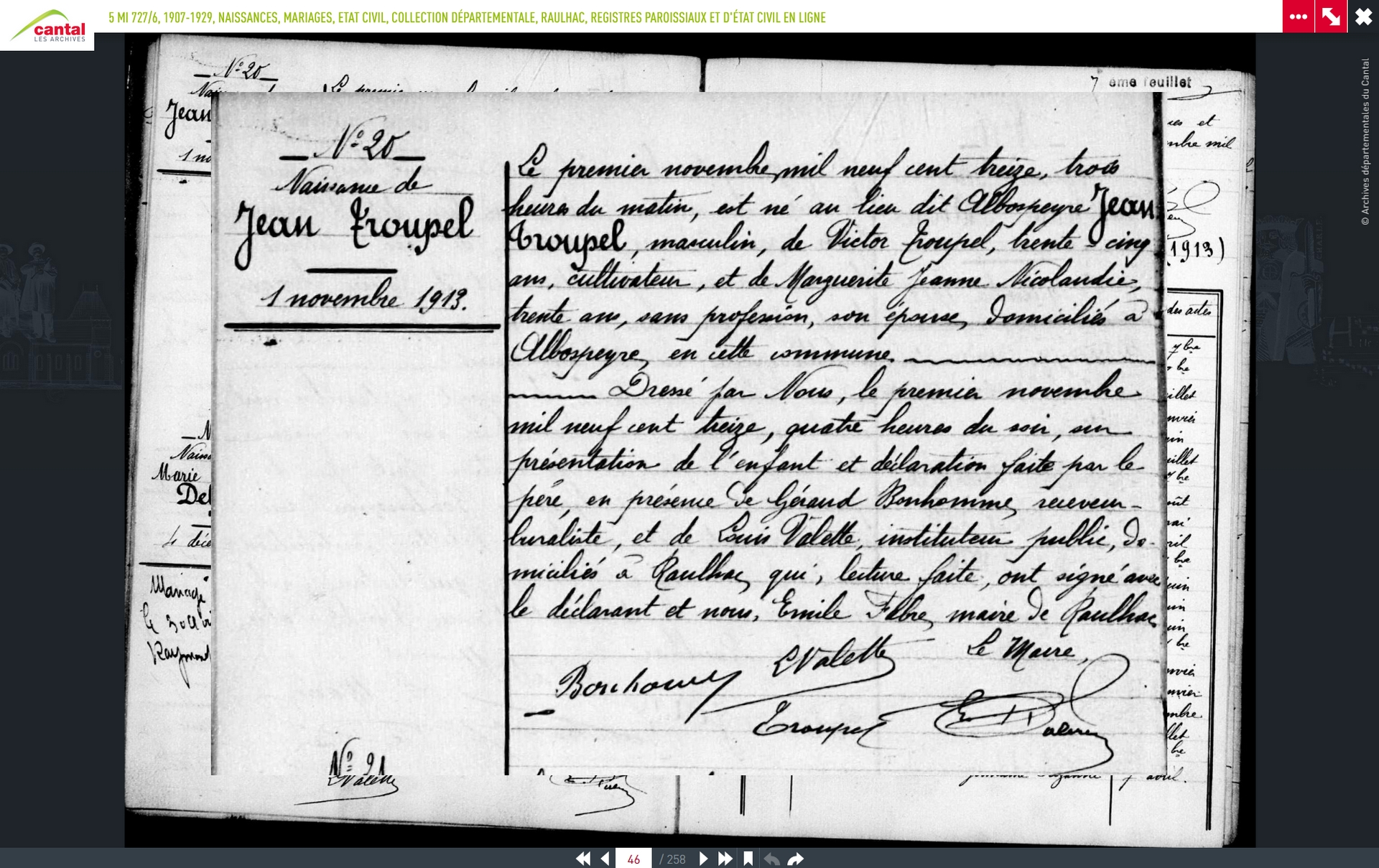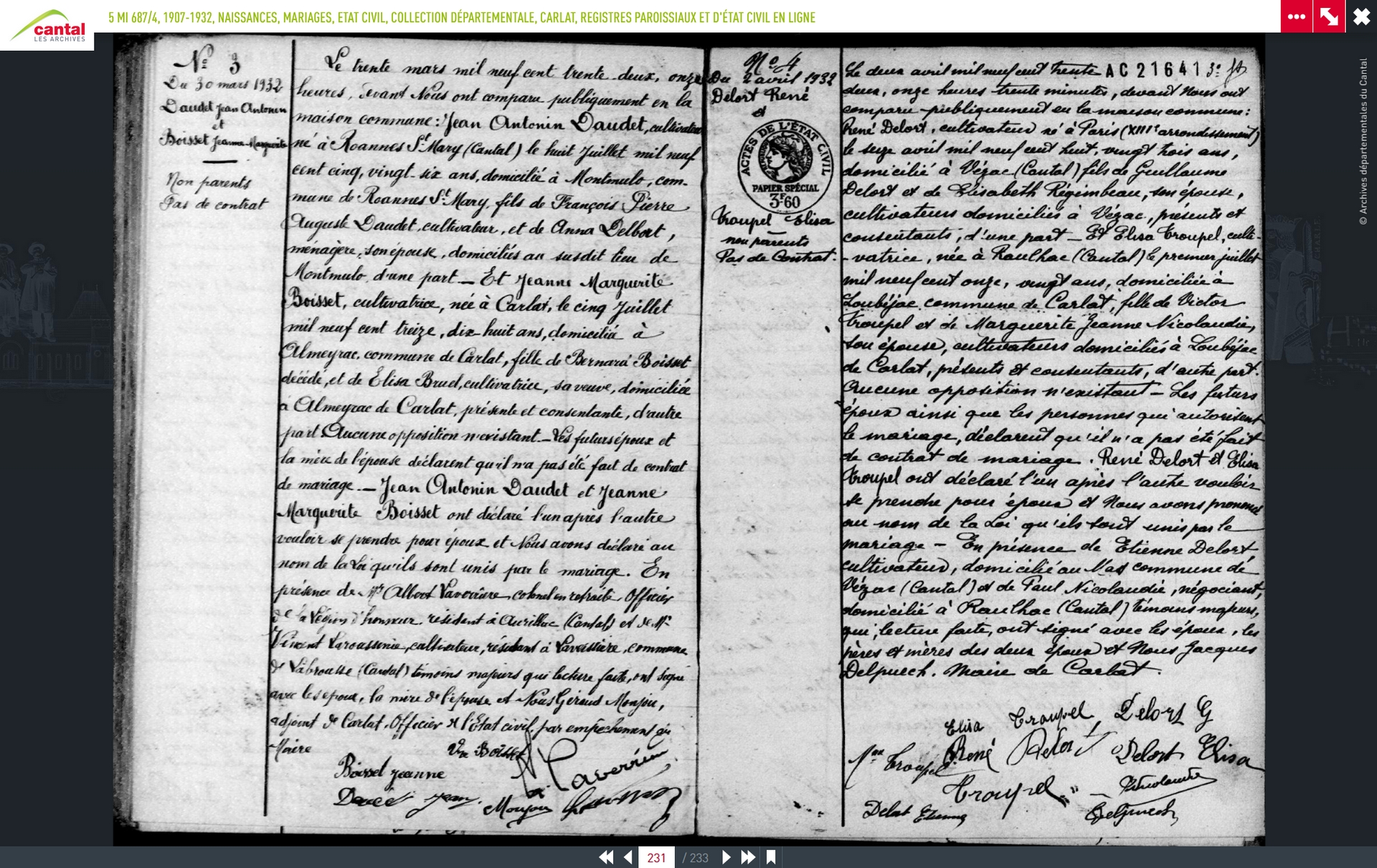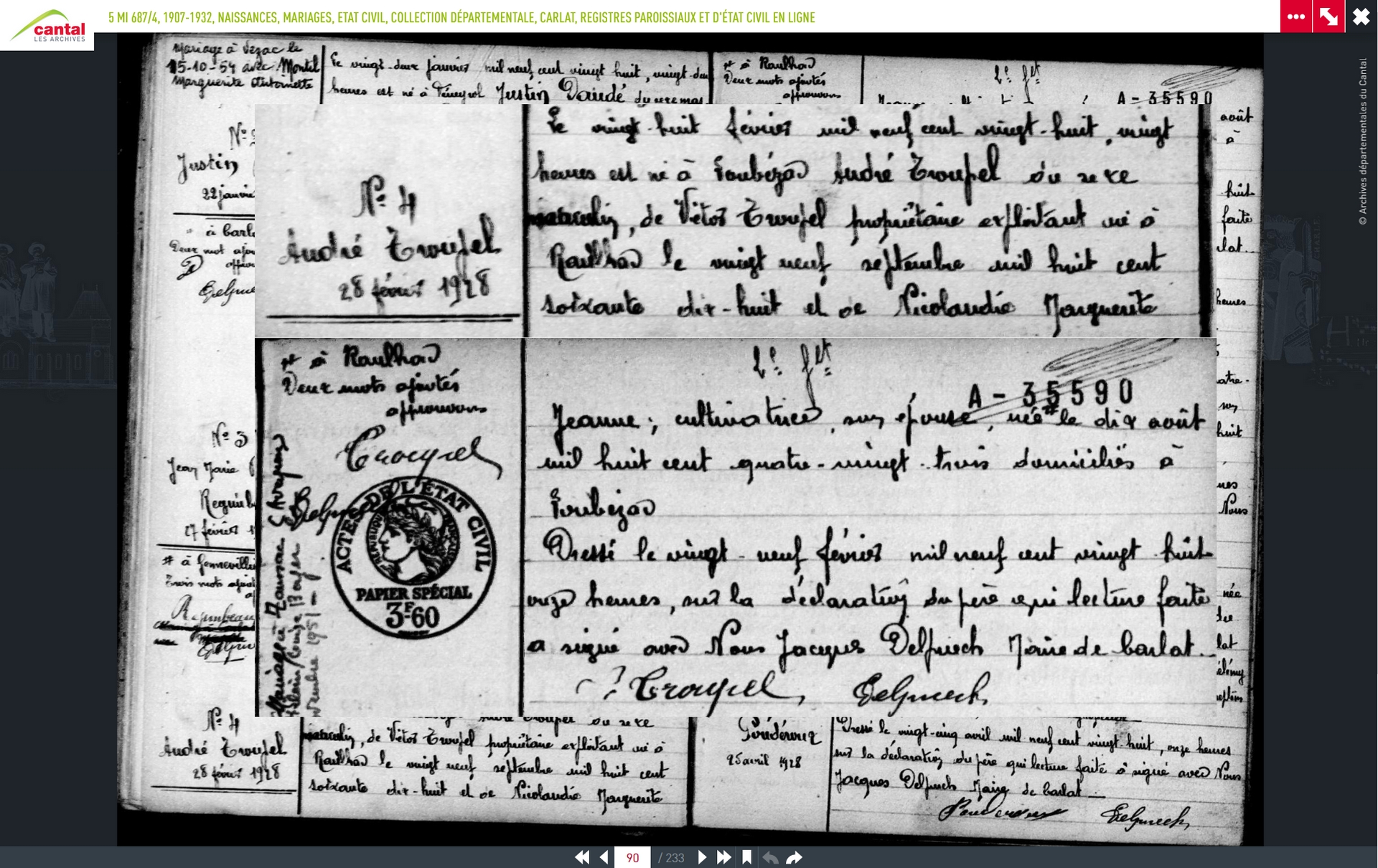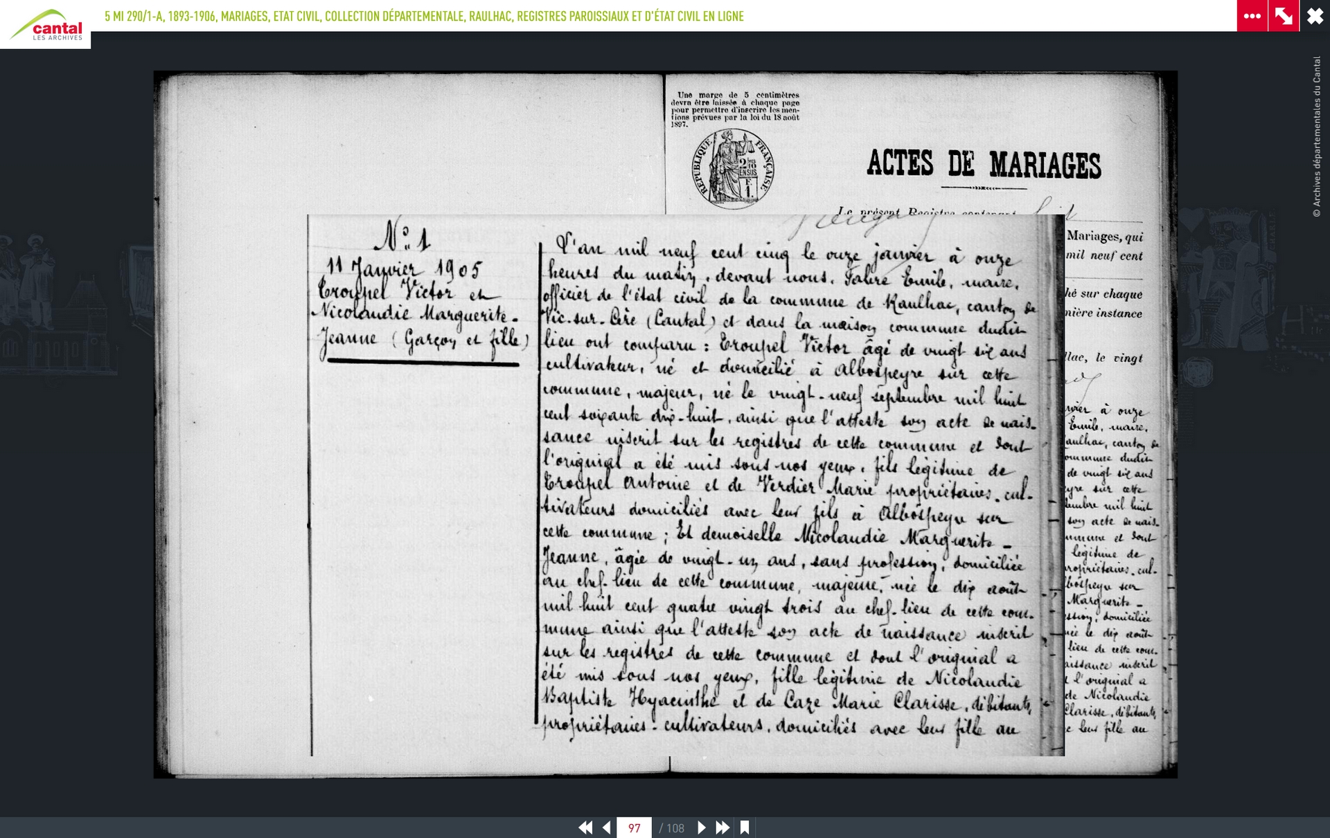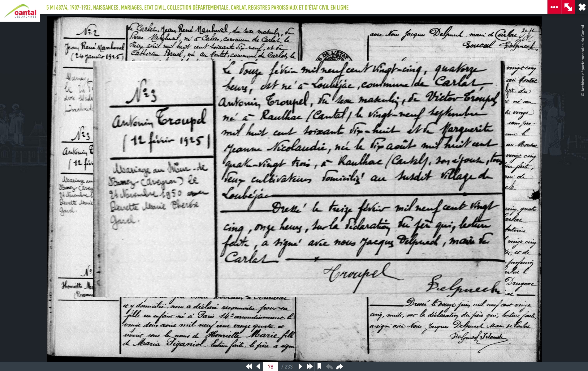 dissement d'Aurillac, Cantal, est comparu Troupel Antoine, âgé de trente ans, proprié-
