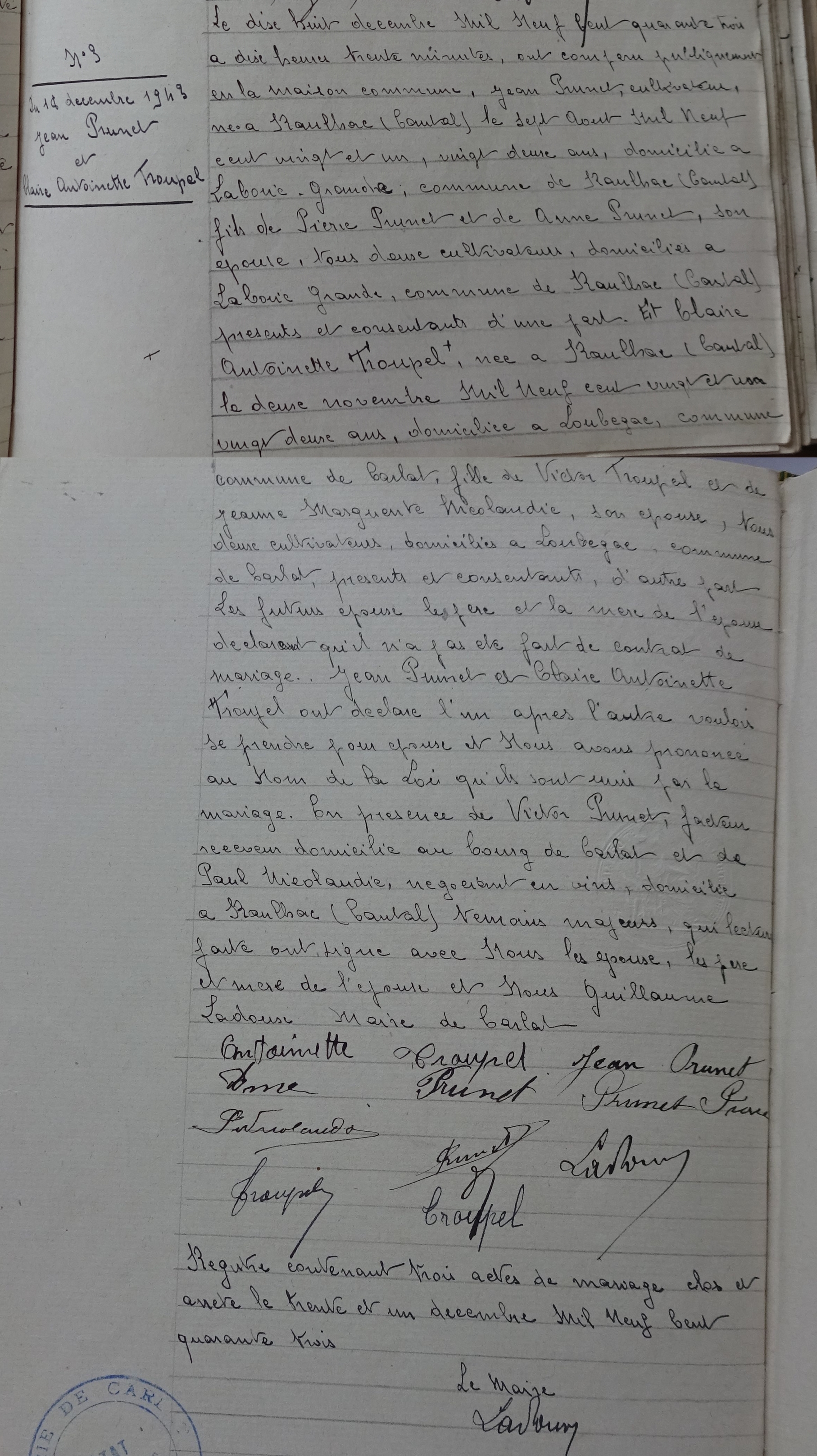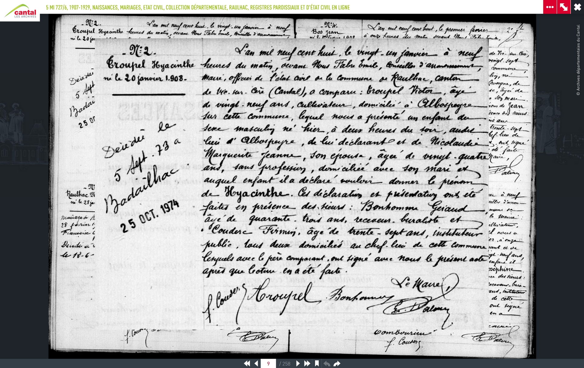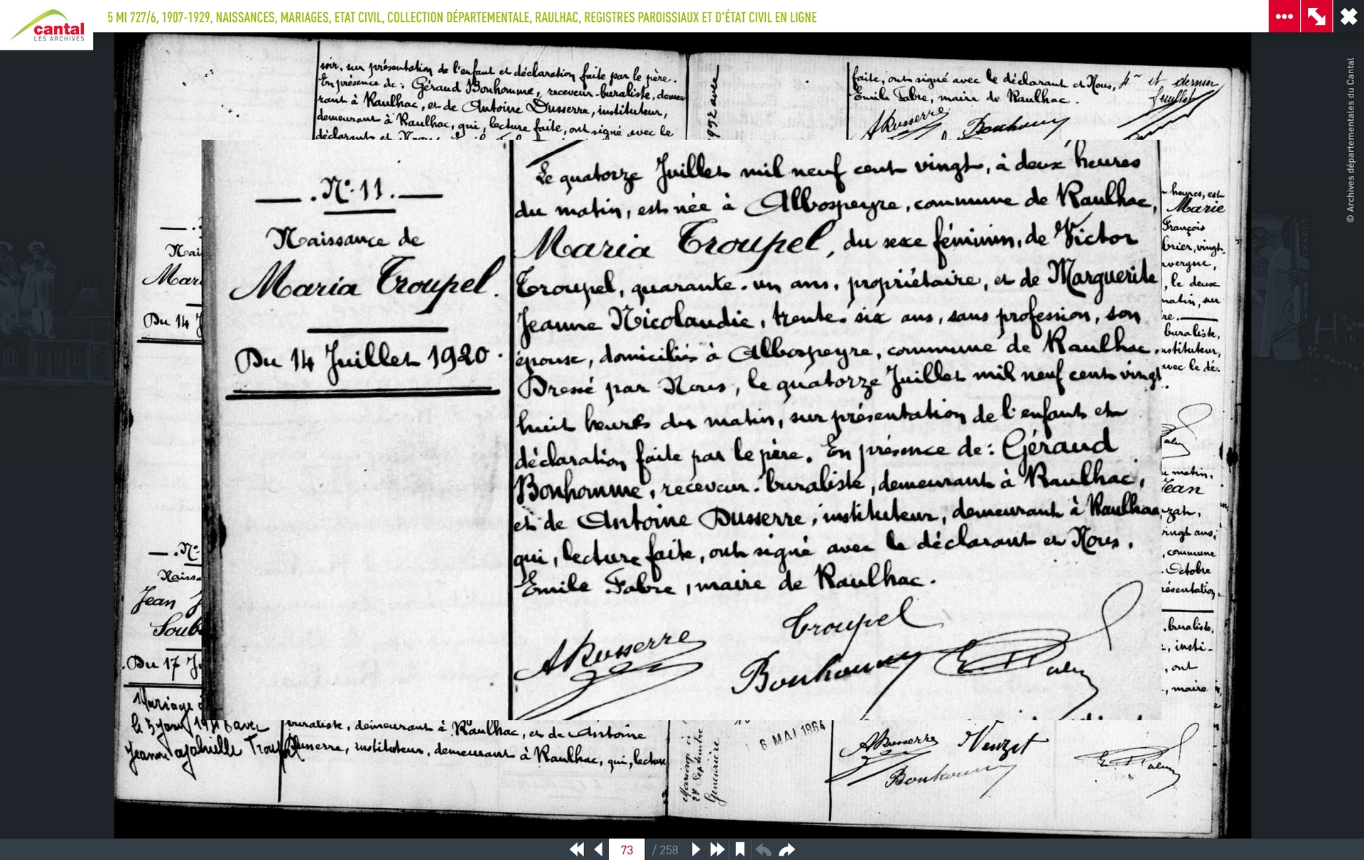 nous, Garnier Calixte, maire officier de l'état civil de la commune de Raulhac arron-