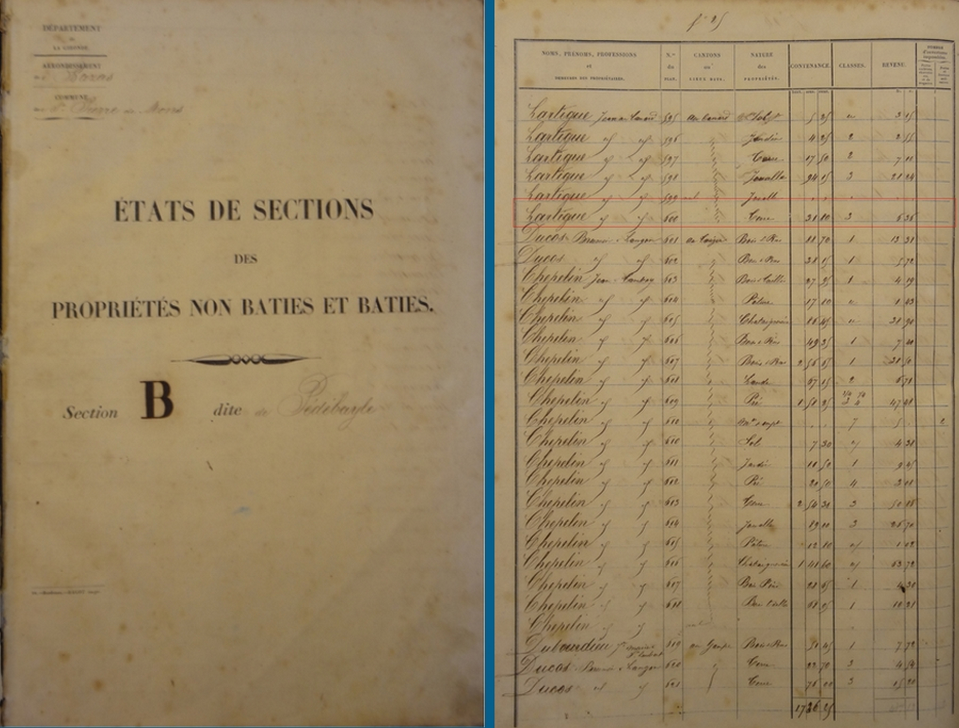 3. Rechercher le propriétaire dans le registre état des sections,