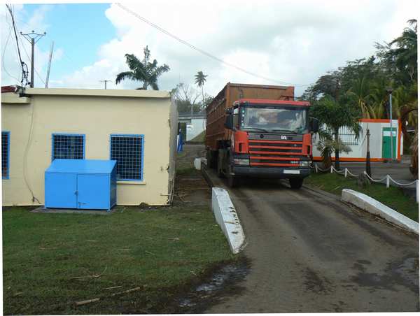 La réception des cannes par l’usine se fait directement à la balance de la sucrerie.
