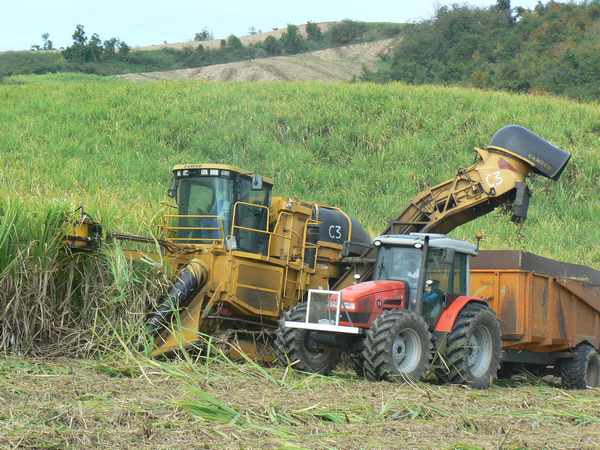 Les cannes sont coupées au ras du sol, soit manuellement au coutelas, soit de façon mécanisée. Ces machines découpent, tronçonnent et chargent dans des véhicules les morceaux de canne.