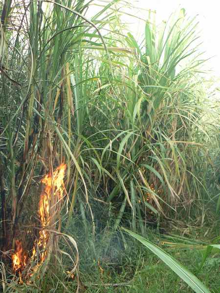 La méthode dite « australienne » consiste à mettre le feu aux plantations à couper et à procéder seulement à la coupe de la base des chaumes,