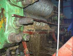 Elle passe ensuite au travers d'un moulin à deux cylindres pour une première extraction.