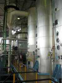 Le jus clair est chauffé à différentes températures dans des évaporateurs à pression réduite.