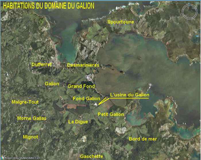 L'Etablissement est construit sur l'habitation " Grands-Fonds " mais s'appelle " Usine du Galion ".