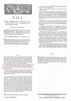 Les 16 et 18 mai suivants, Bonaparte faisait voter le maintien de l'esclavage dans ces