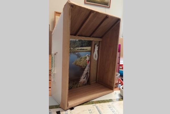 La cabanne de pêche au bord de l'étang, toujours à l'exeption du chat dans son panier, tout le reste sort de mon imagination.