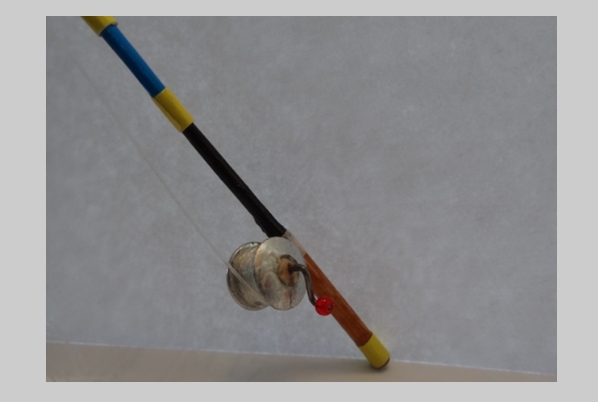 Le moulinet de la canne réalisé à partir de rivets pop.