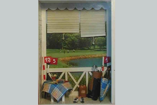 Le caddy : un tube de cachets d'aspirine habillé de feutrine et de cuir. (toujours les restes du salon)