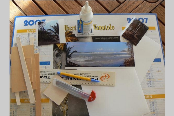 Comme d'habitude, la boîte est faite en carton bois, chutes des boîtes précédentes, le ciel est peint à la peinture acrylique.