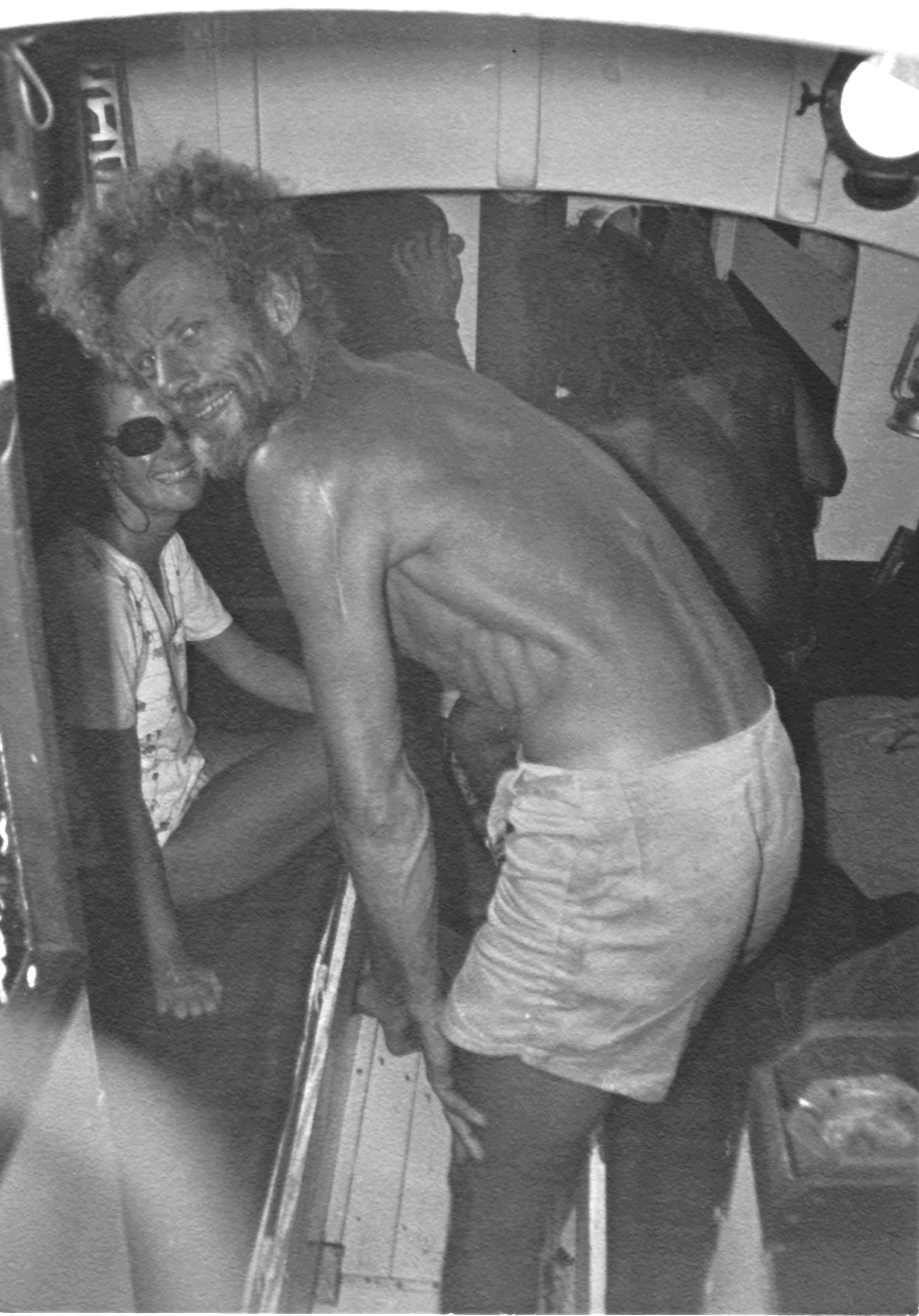 "Quand Ann a embarqué sur Wanda, 7.50 m, c'était un vrai bateau de célibataire : mes casseroles étaient noires, l'aménagement était noir car je me servais de pétrole pour la cuisine et l'éclairage, j'avais peint la cabine en gris fonce pour que la crasse ne se voit pas. Il n'y avait pas de W.C. et ce fut presque la cause d'un divorce. Finalement, je dus en installer un. Sans parler de la pompe qui était dure. Et le petit diable qui est en moi m'a empêché de la réparer."