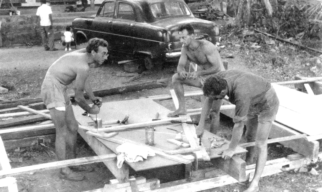 Bernard conseil à James de construire Rongo, le nouveau catamaran de 40 pieds qu'il a dessiné « Il faut que tu construises le bateau que tu as dessiné et que tu repartes naviguer, sinon tu finiras par pourrir ici, dans ce paradis. » « Bernard a donc pris la décision à ma place, commente Wharram. Mais c’est Henry qui m’a beaucoup aidé à démarrer le chantier de ce nouveau catamaran de 40 pieds, baptisé Rongo ».