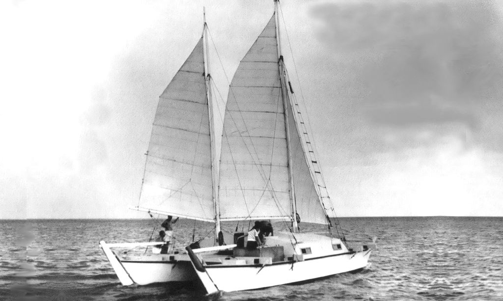 Il a dessiné et construit avec l'aide de sa compagne, Ruth, un catamaran en bois de 23 pieds, le Tangora. En septembre 1955, avant de mettre cap vers l'Espagne, Jutta, nouvelle équipière, rejoint le bord.