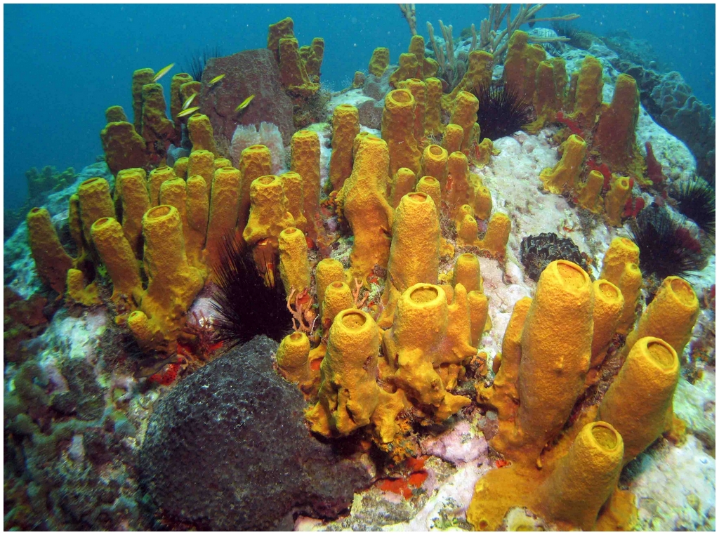 Facile à observer, les éponges se trouvent sur pratiquement tous les sites de plongées et à tous les niveaux.