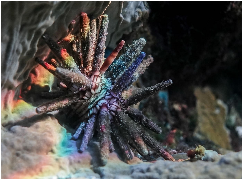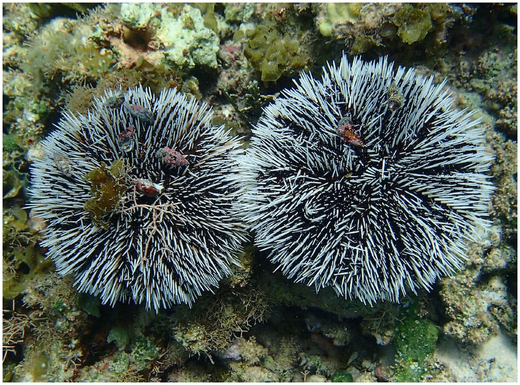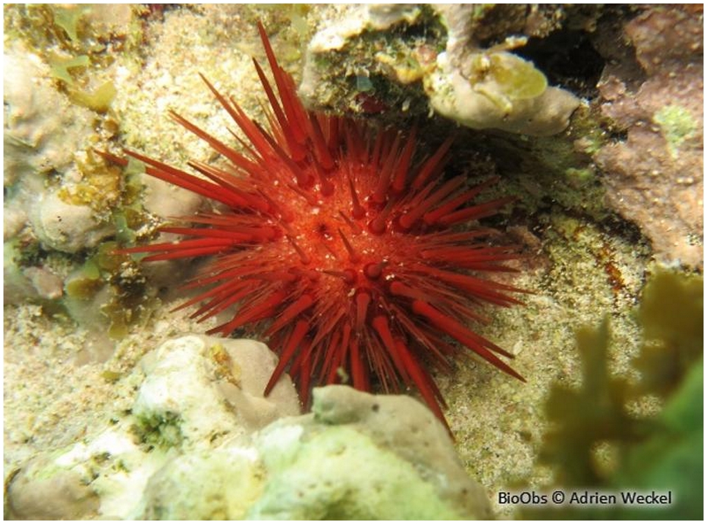 Distribution : Cet oursin est un habitant des lagons et des récifs coralliens, on le trouve aussi dans les herbiers de phanérogames mélangés de débris rocheux, généralement en eaux peu profondes.