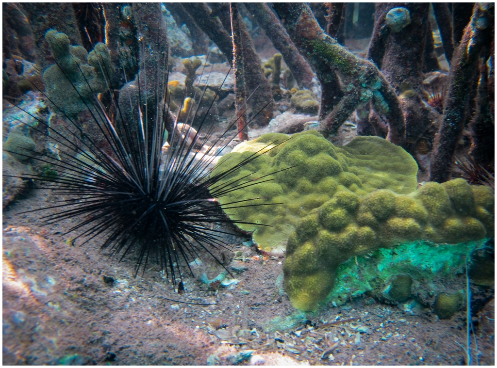 Distribution : Cet oursin est très répandu dans le bassin Caraïbe. Il est très courant sur les platiers des lagons à moins de 10 m de profondeur.