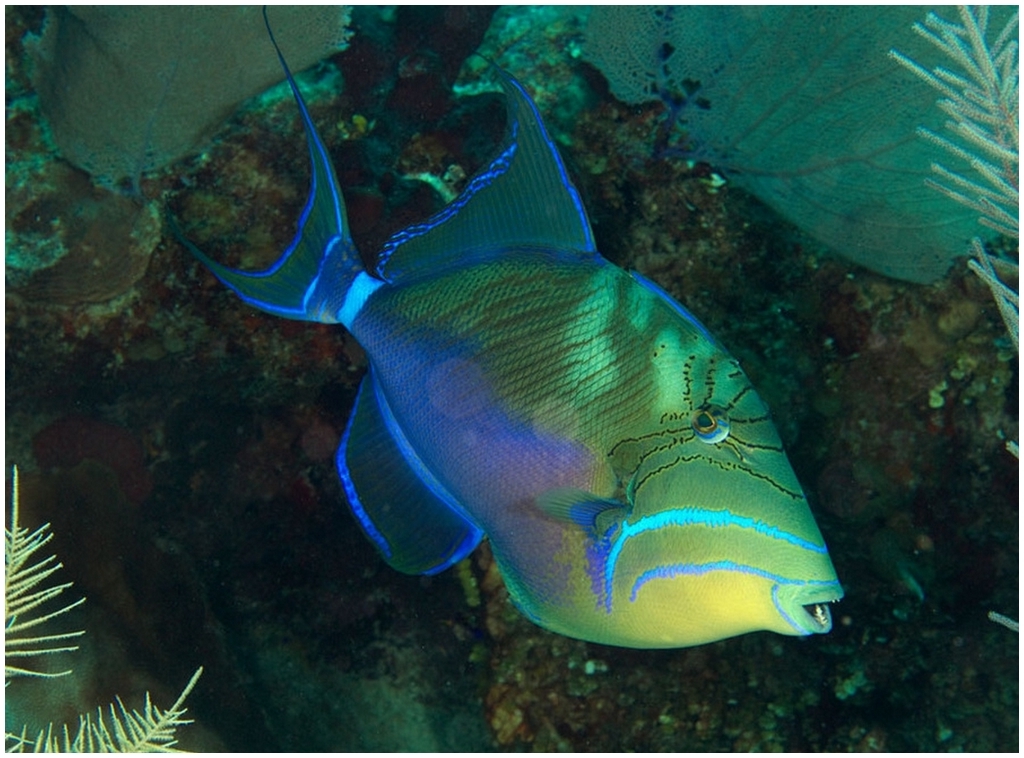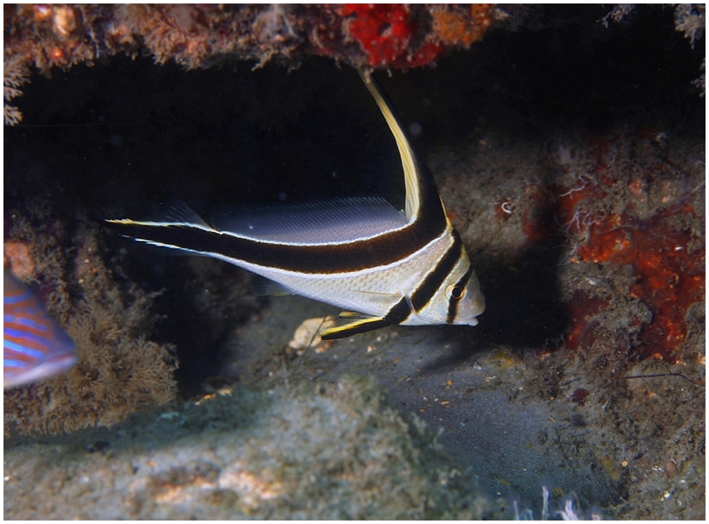 Distribution : Il nage parmi les coraux et les fonds rocheux entre 5 et 25 m de profondeur.