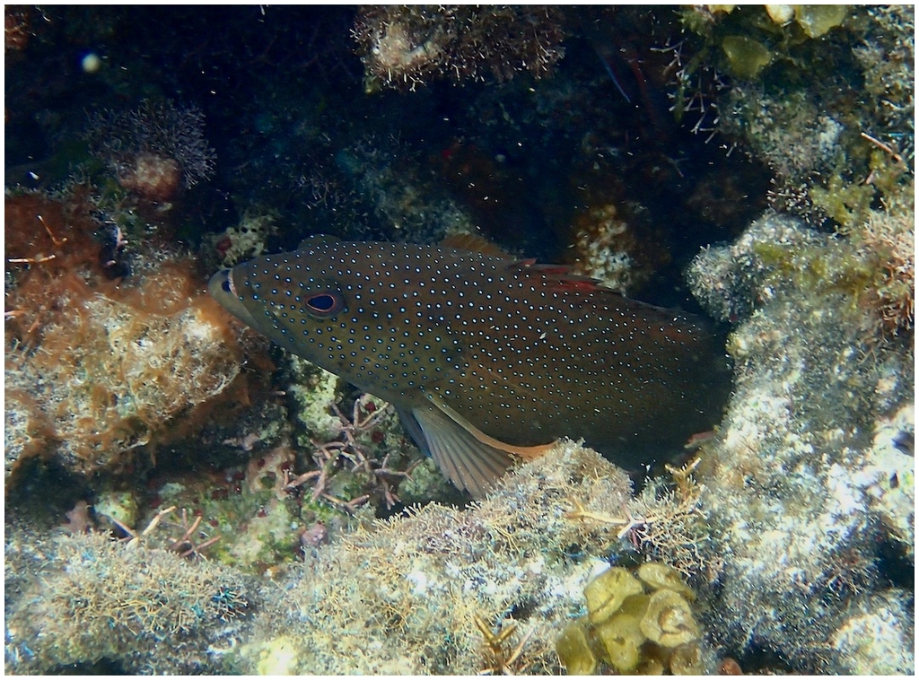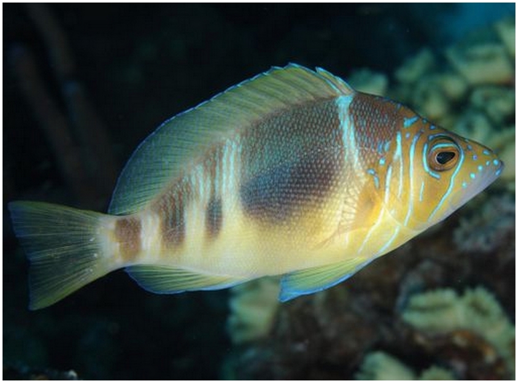 Distribution : Le hamlet marbré se rencontre, en général solitaire, sur le récif et près du fond sur les zones coralliennes à des profondeurs variant entre 3 et 22 m.