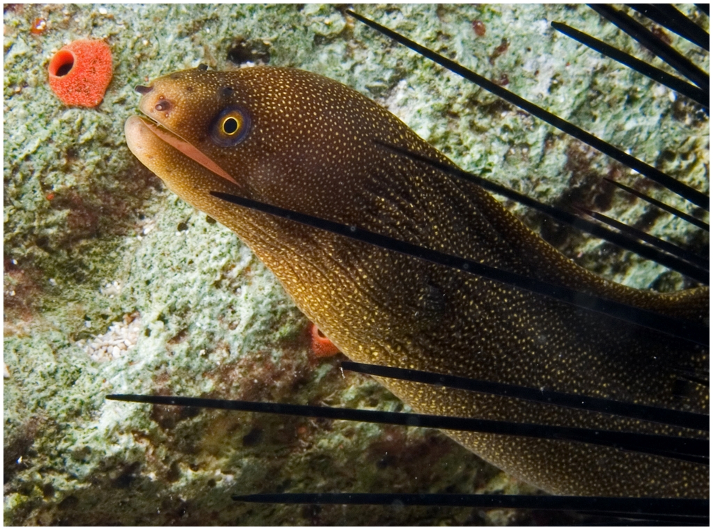 Distribution : La murène-porcelaine se trouve dans les récifs et pentes coralliennes vers 15 - 30 m, parfois jusqu'à 60 m.